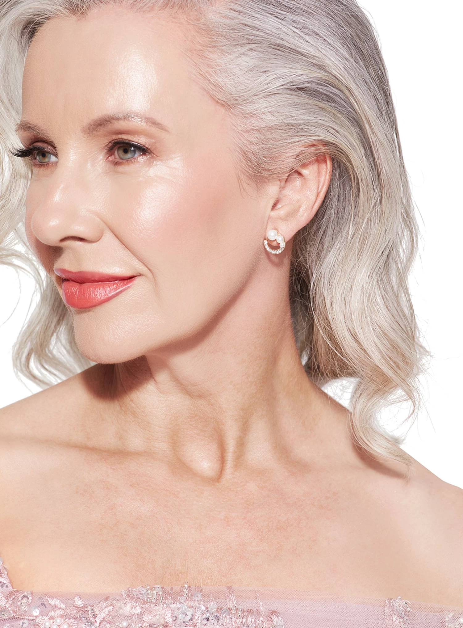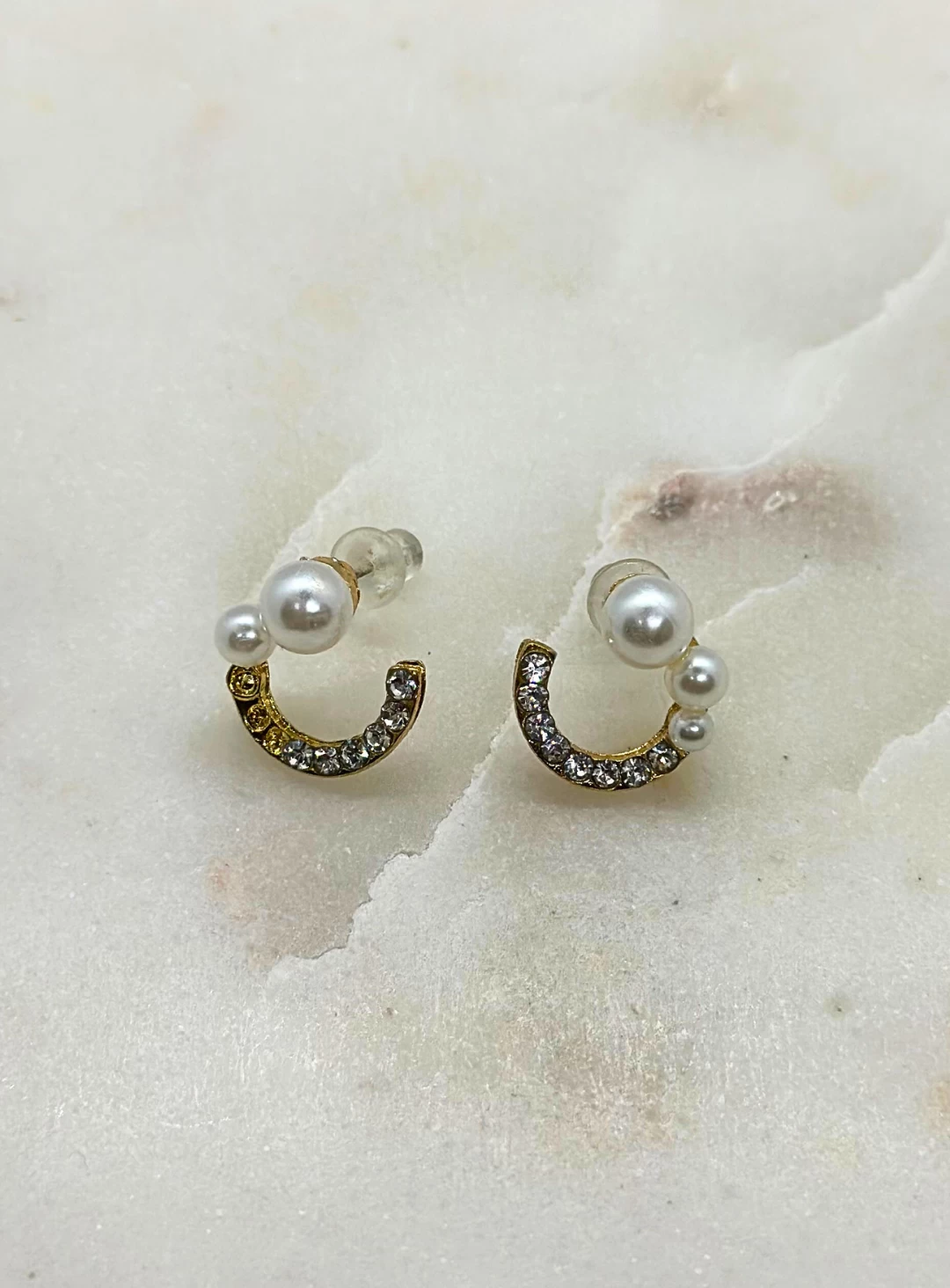 A stunning pair of stud earrings featuring small pearls and small diamante. An elegant look perfect for bridesmaids!