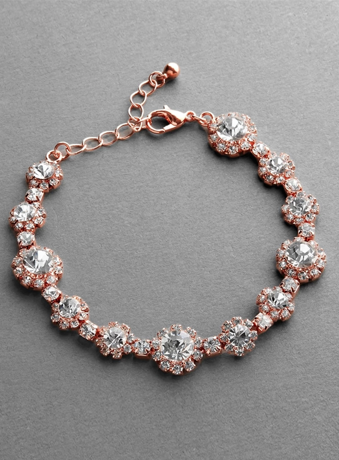 Delicate bracelet by Mariell. Rose gold plated bracelet with rhinestones.
