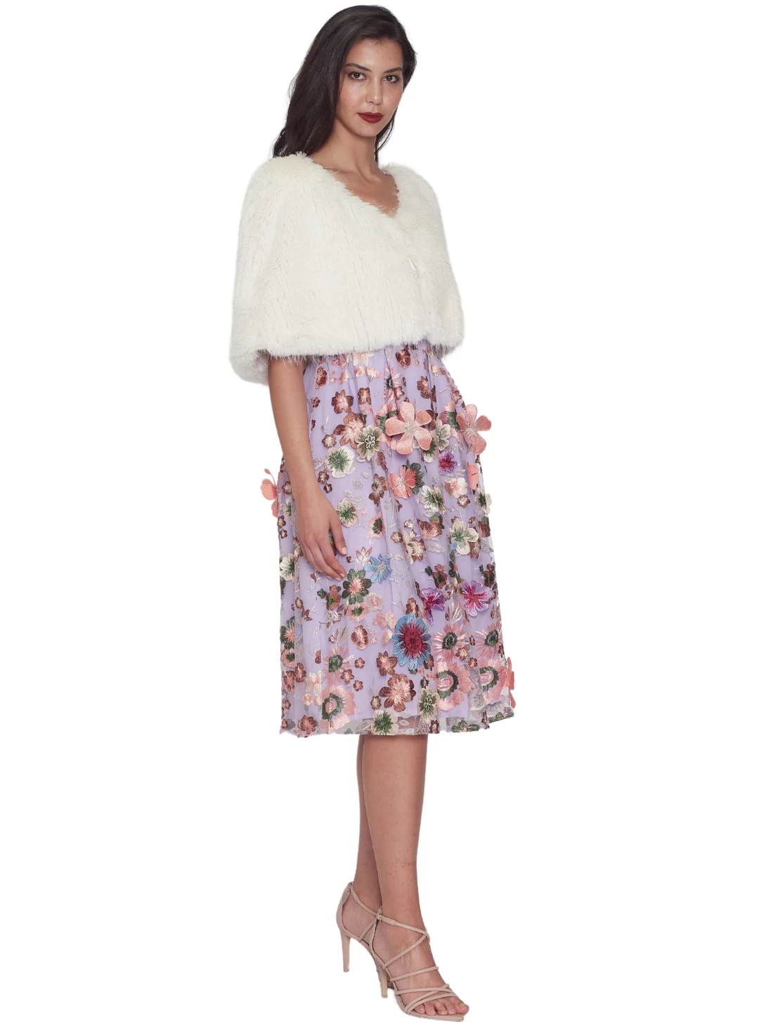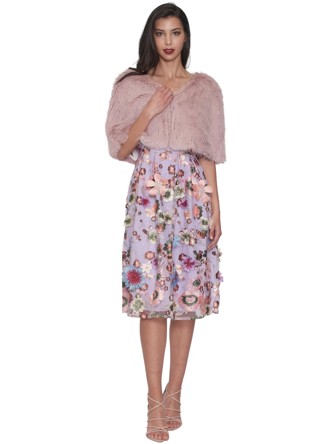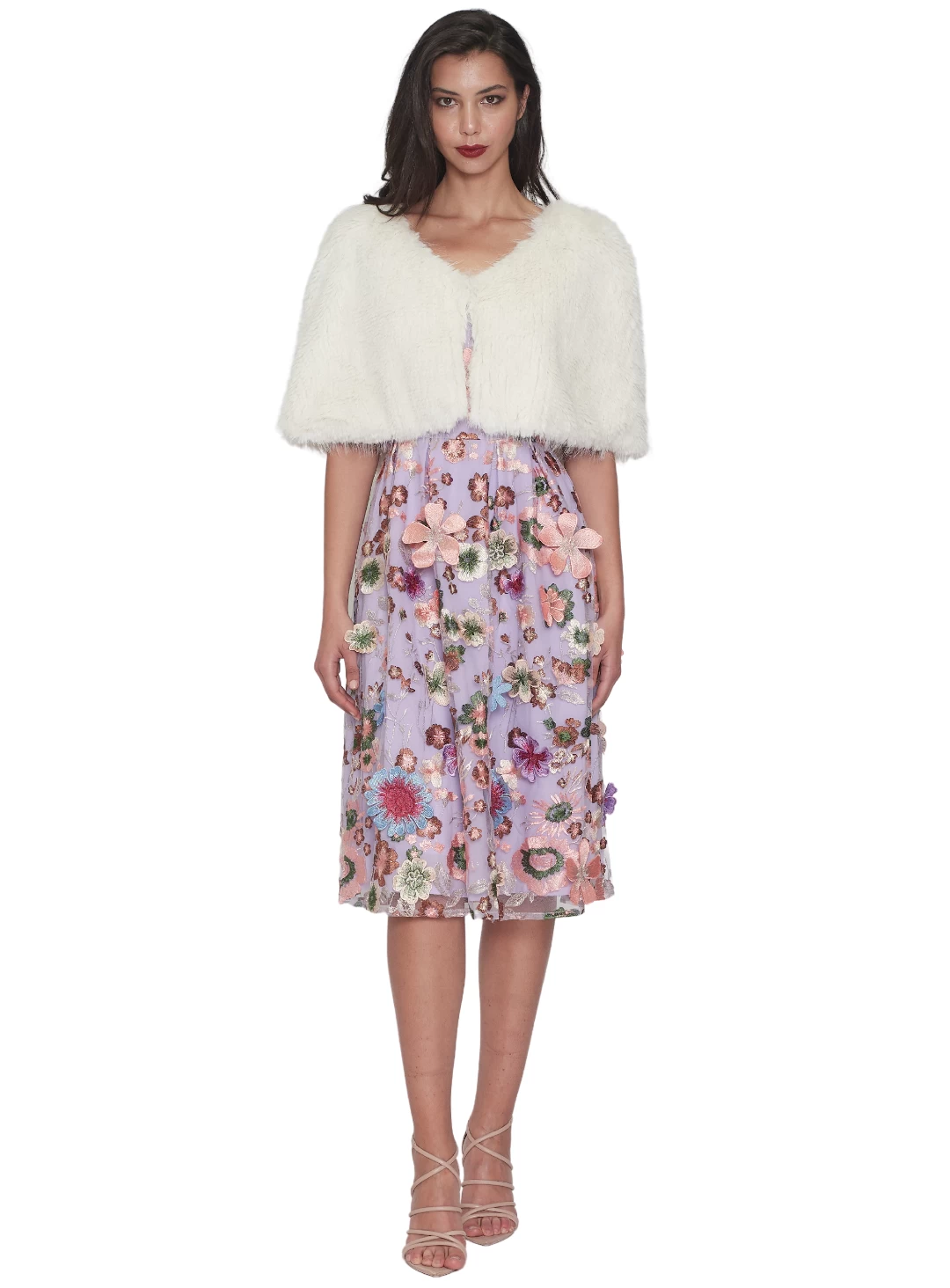A gorgeous faux fur cape by Samantha Rose. Perfect for layering, this cape is constructed with plush short length faux fur and features a snap hook and eyelet for closure in the front.
