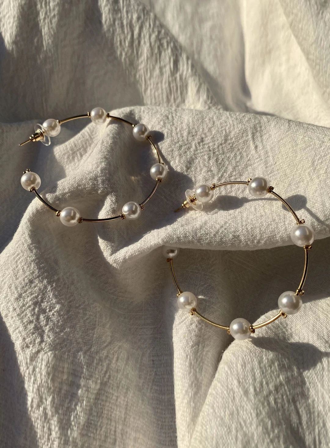 A gorgeous pair of hoop earrings by Samibe. A statement piece featuring faux pearls