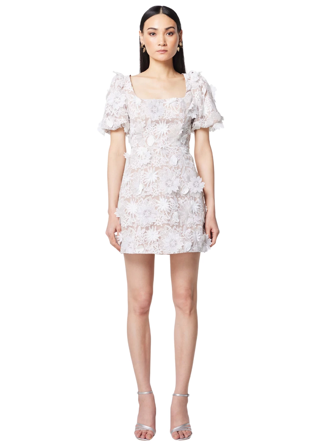 The Balearic Dress is a stunning mini dress by Elliatt. With Elliatt’s signature shape, this dress features 3D floral lace, a square neckline and puff sleeves.
