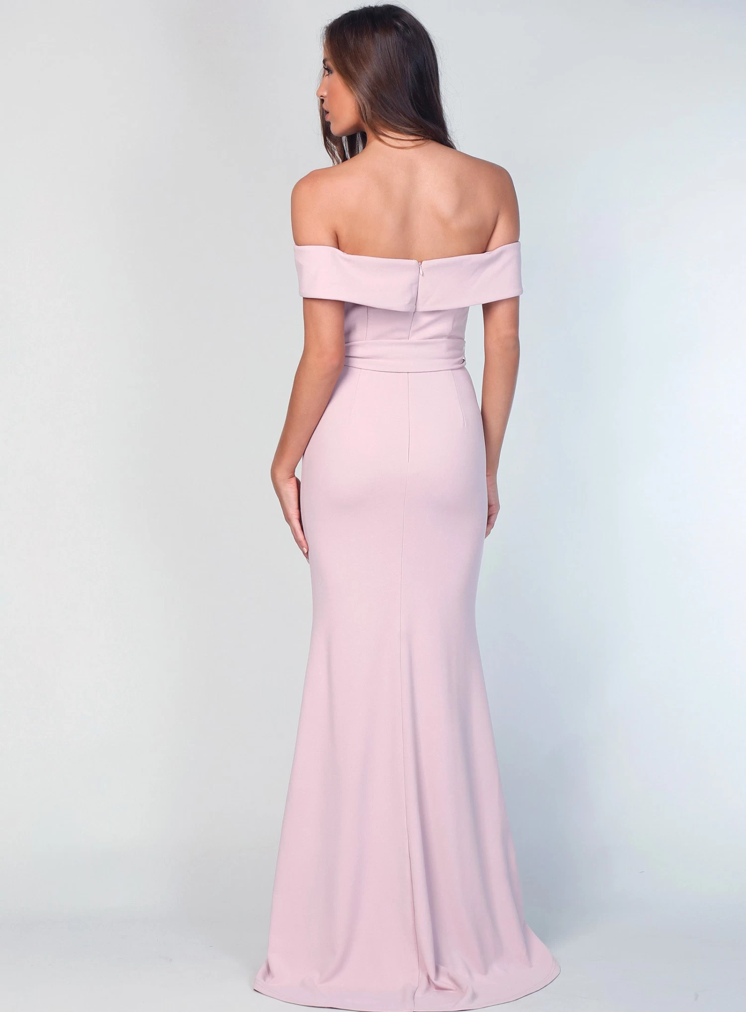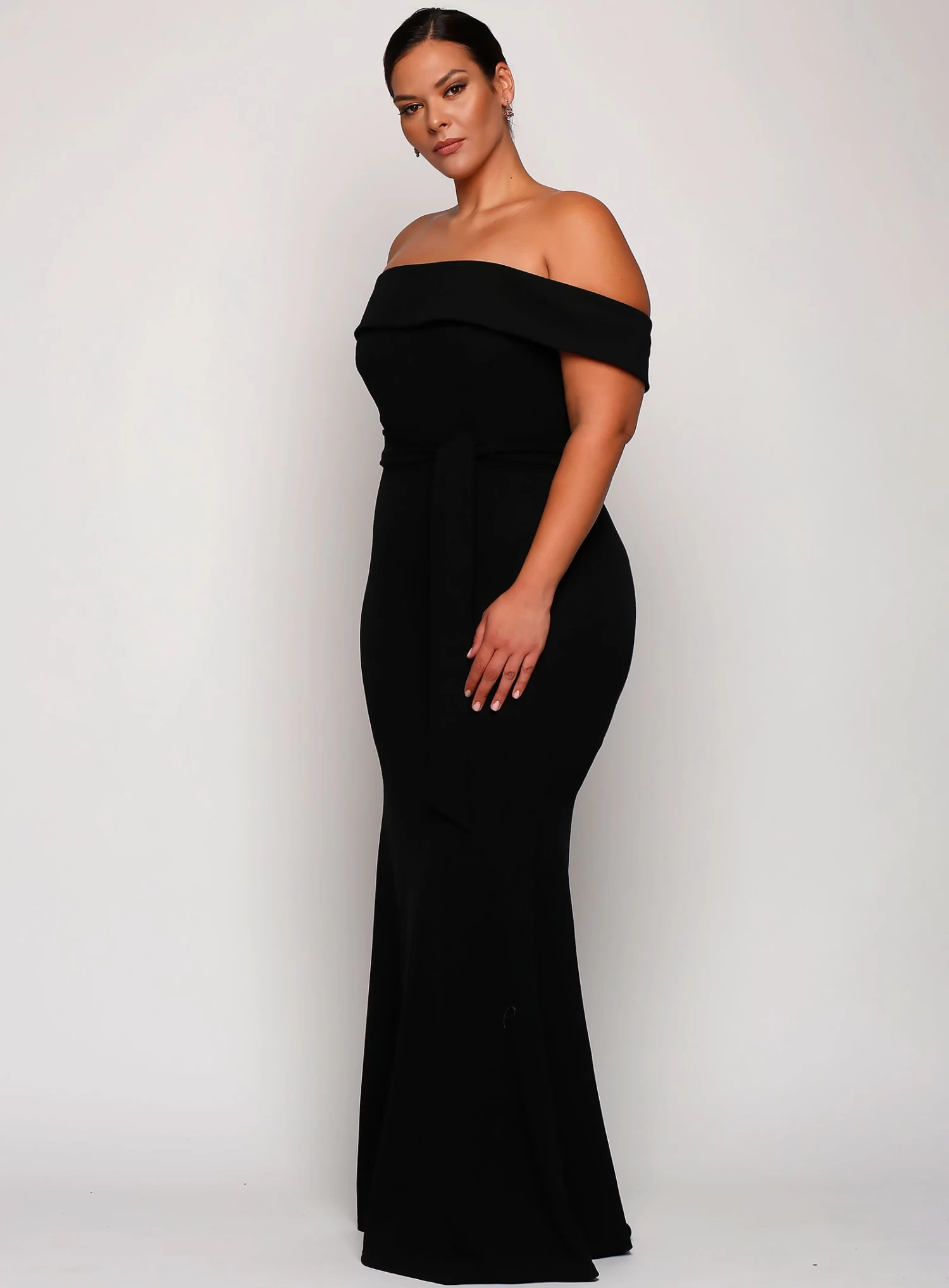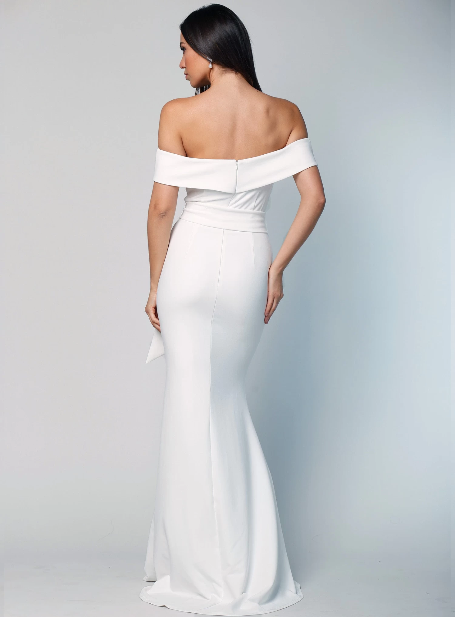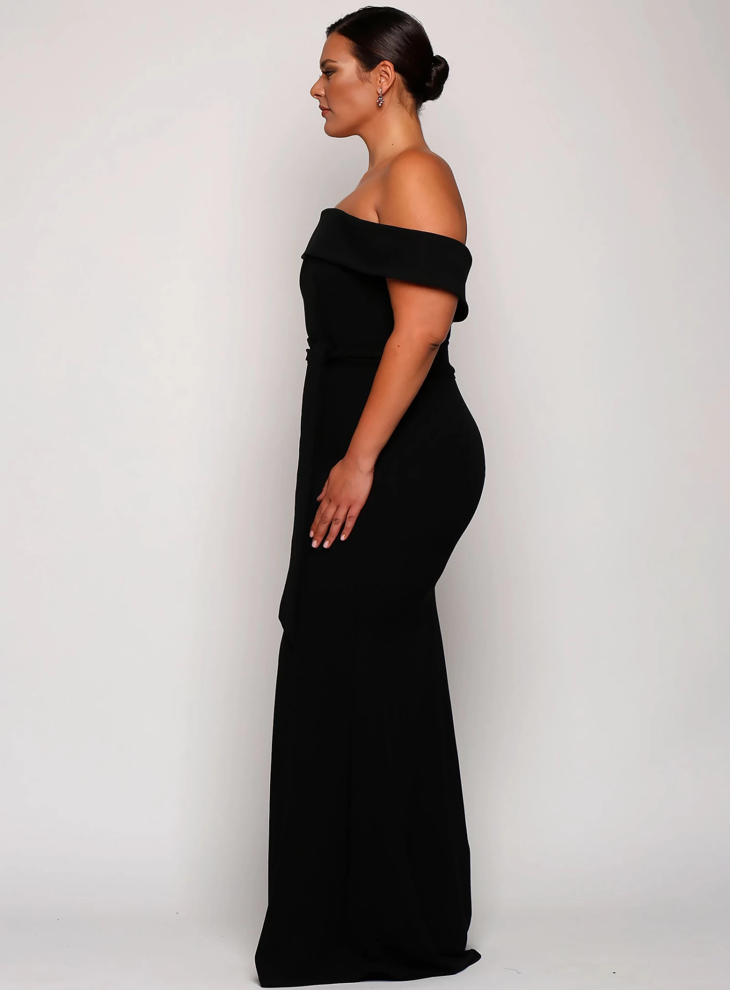 The Bowery Gown is a beautiful full-length dress by Samantha Rose. An off-shoulder fitted gown with a removable waist tie.