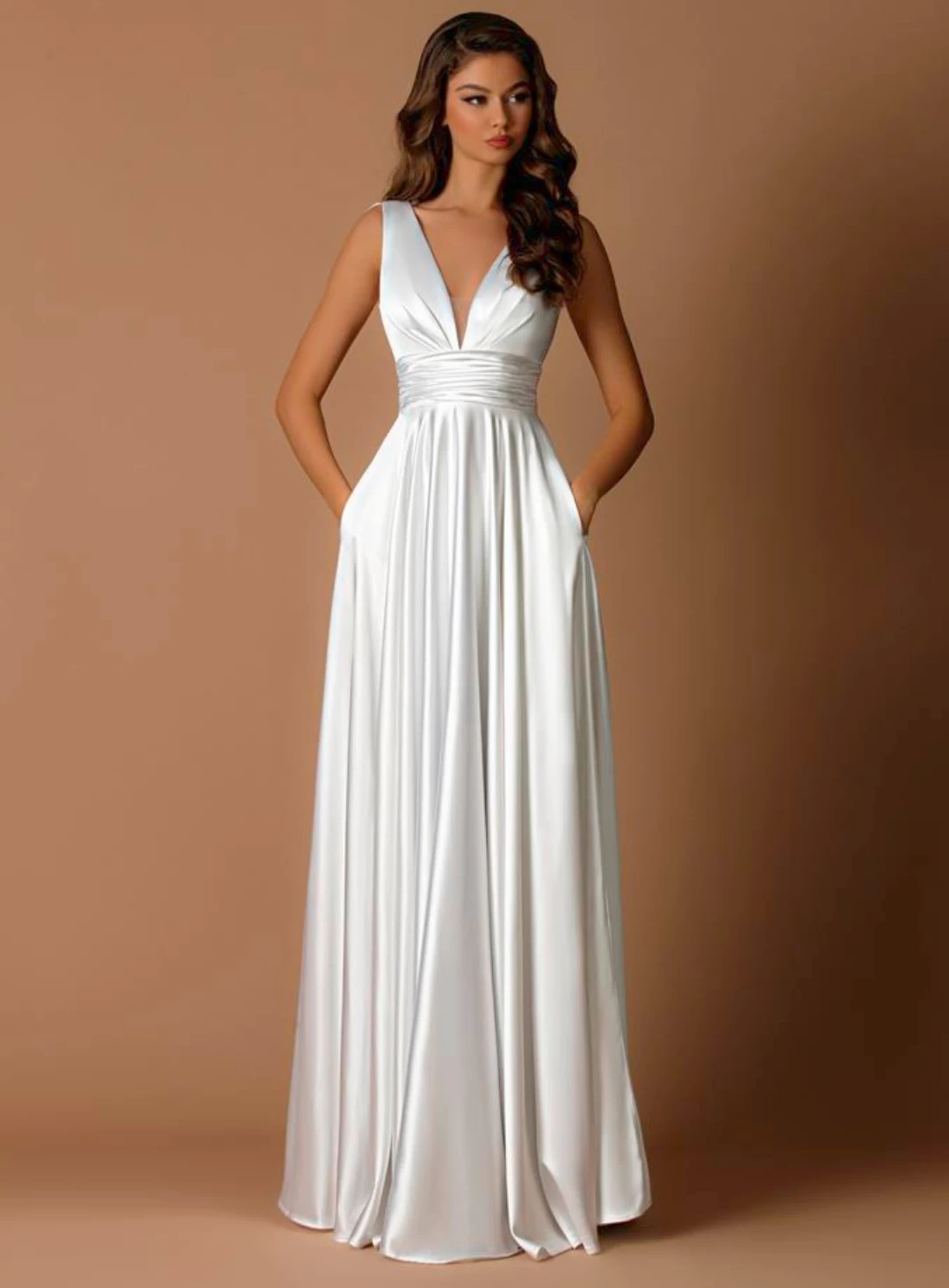 A stunning full length dress by Nicoletta’s Bridesmaid Range NBM1027 (previously JP120). Featuring a v neckline with mesh insert, ruched waist band and full floor sweeping skirt.