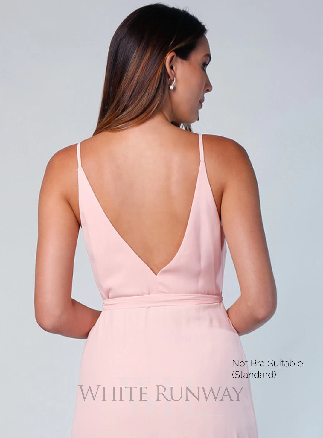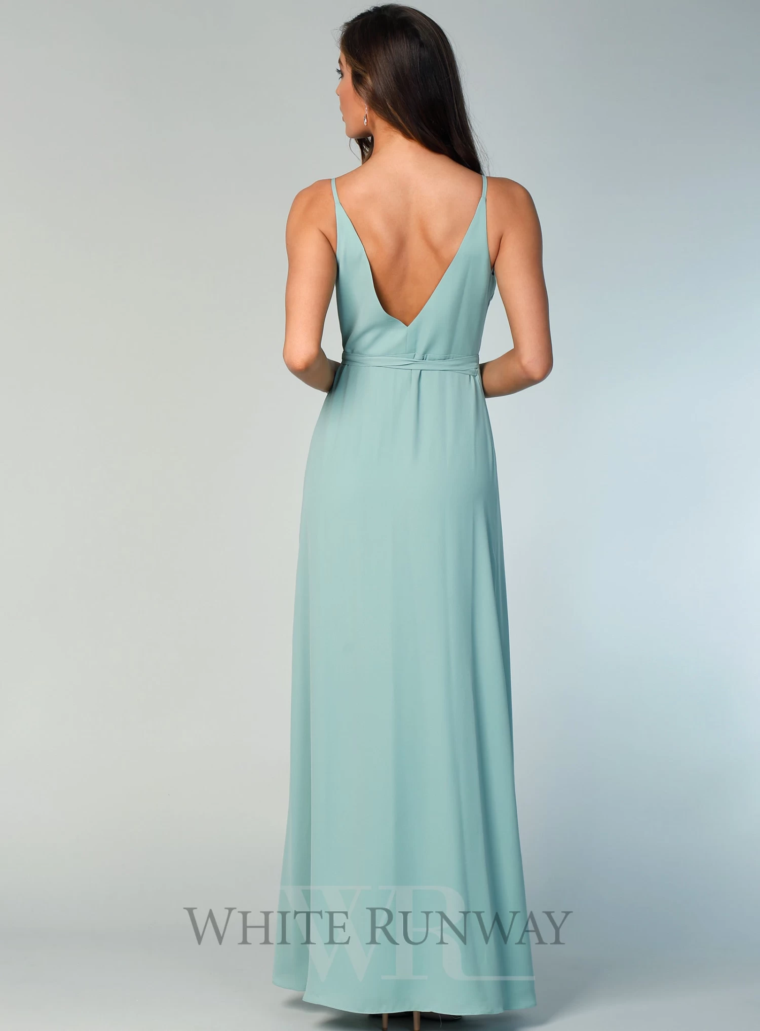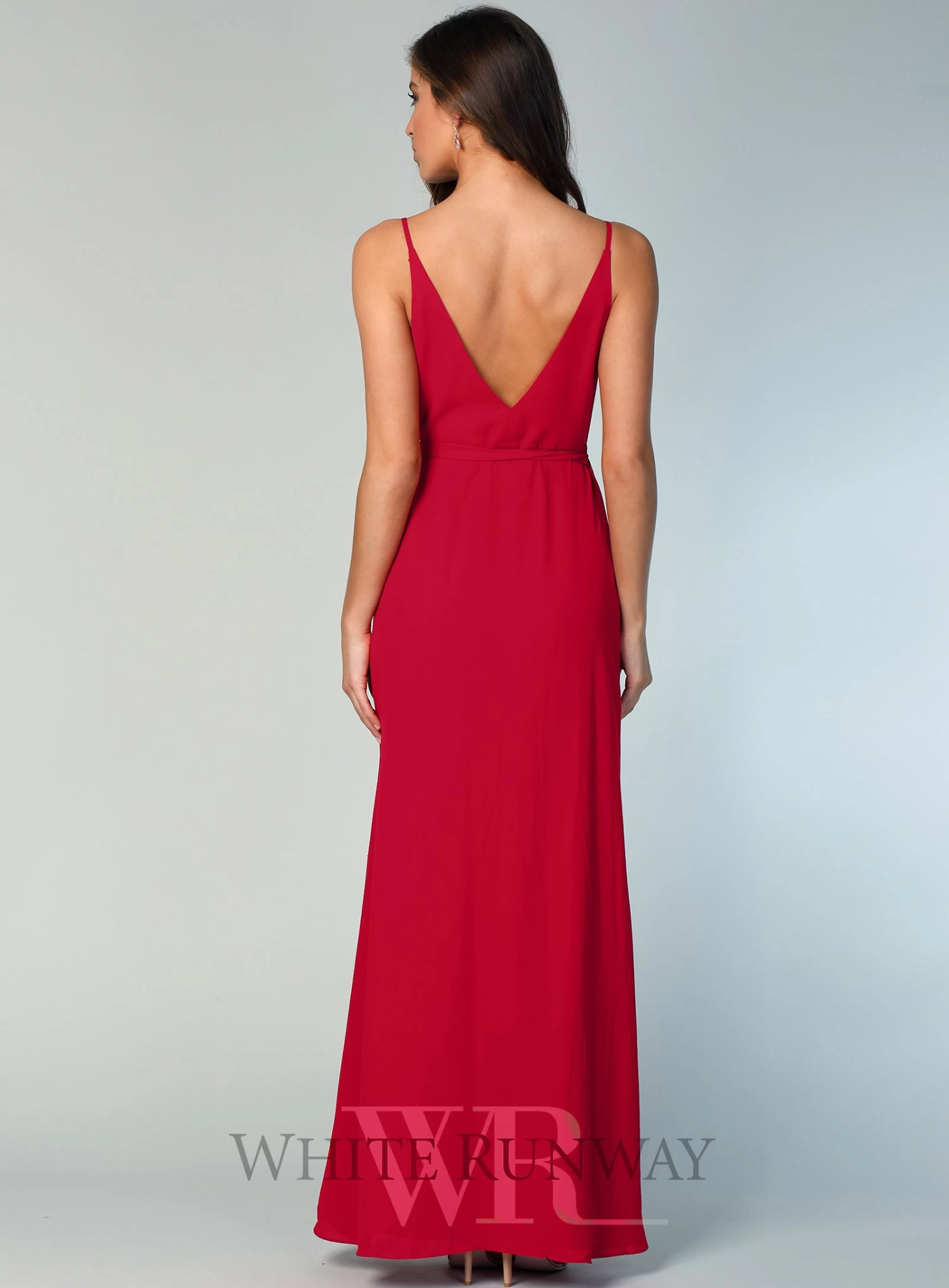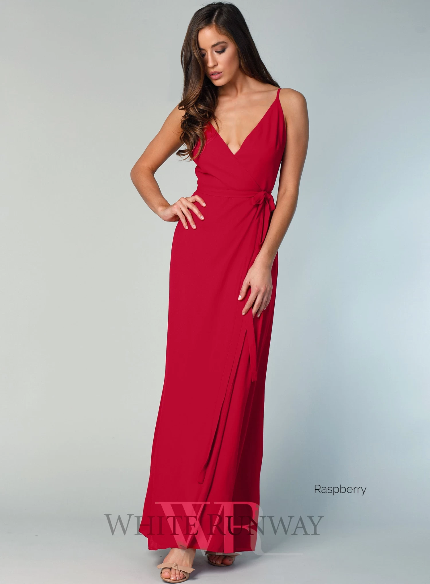 A beautiful full length wrap dress by Samantha Rose. A v-neck style featuring thin straps and self tie at waist.