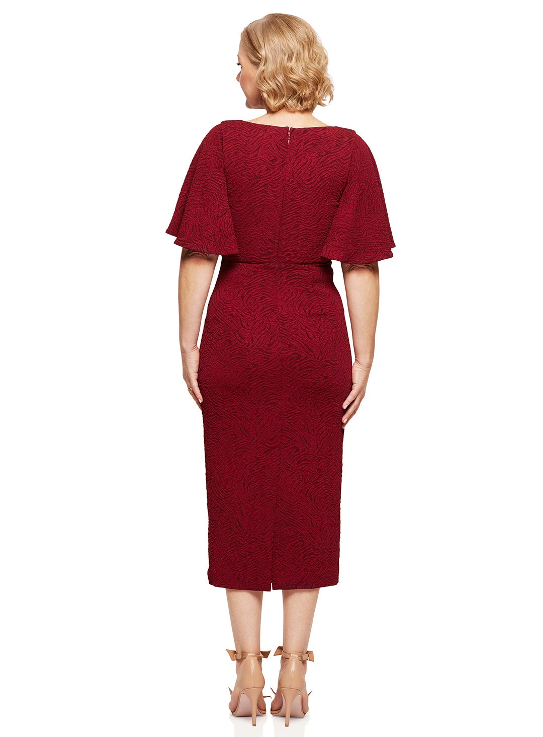 A stunning midi dress by Trellis Lane. A flattering style featuring a v neckline, ruching and flowy cap sleeves.