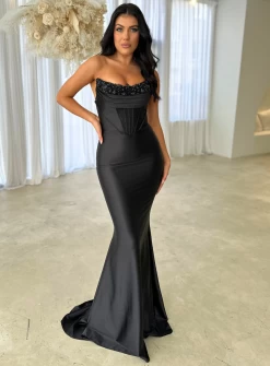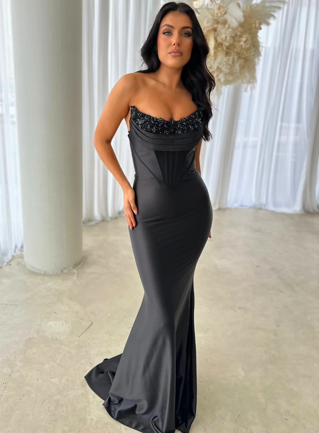 A gorgeous full length gown by Nicoletta NC1093. A strapless design featuring an embellished bust, structured bodice and mermaid skirt.