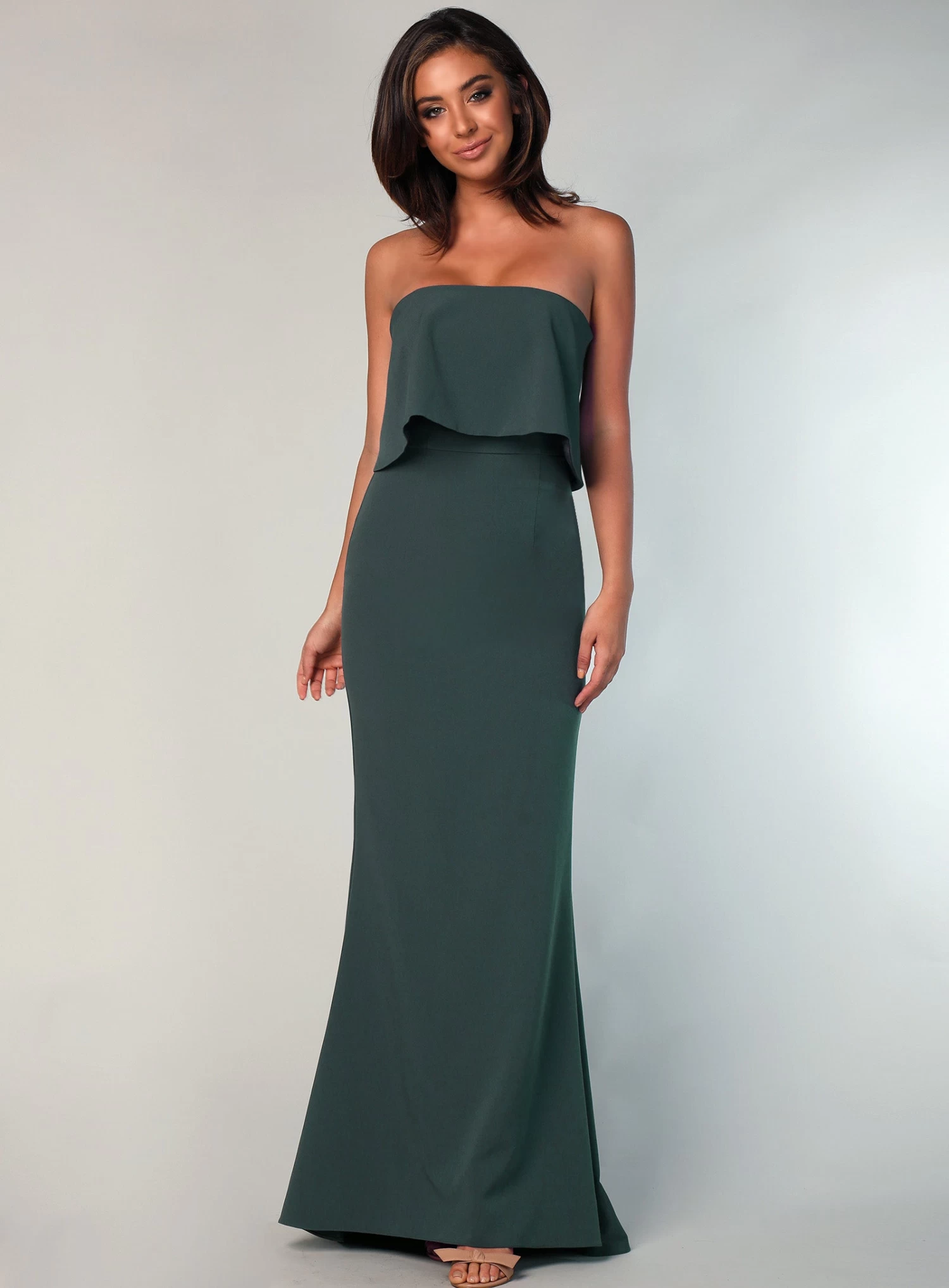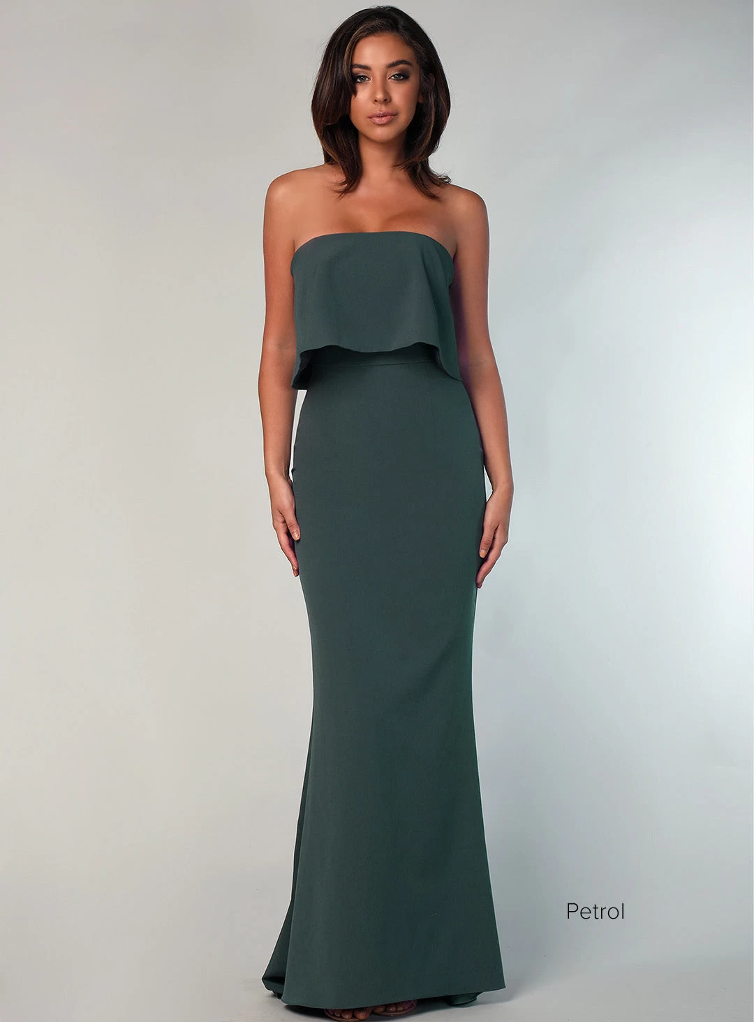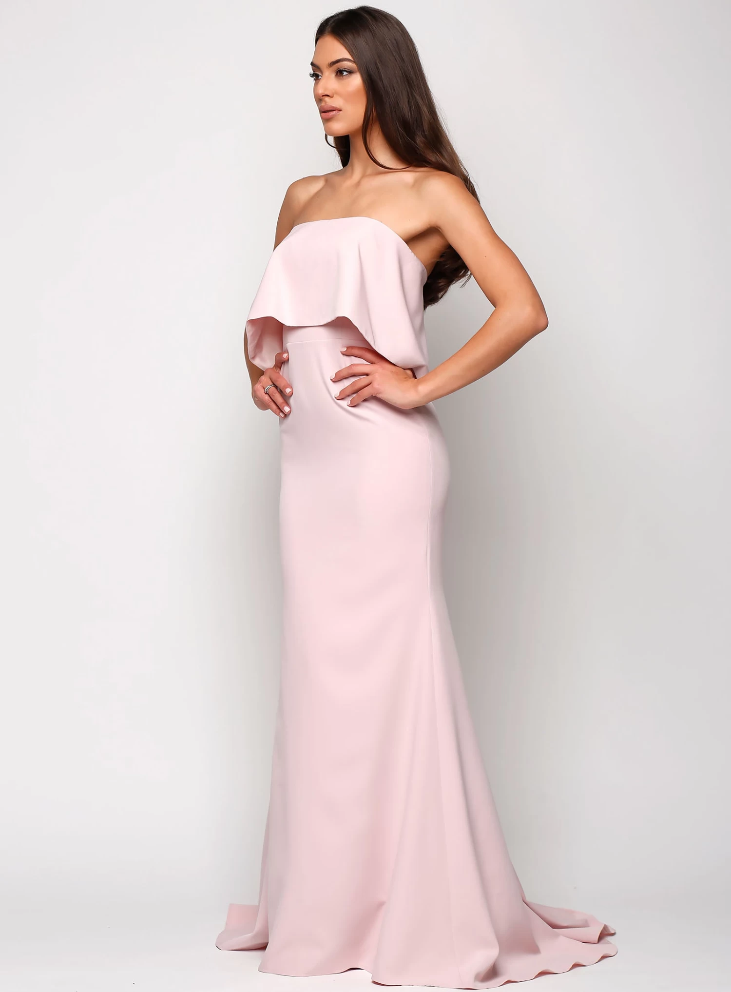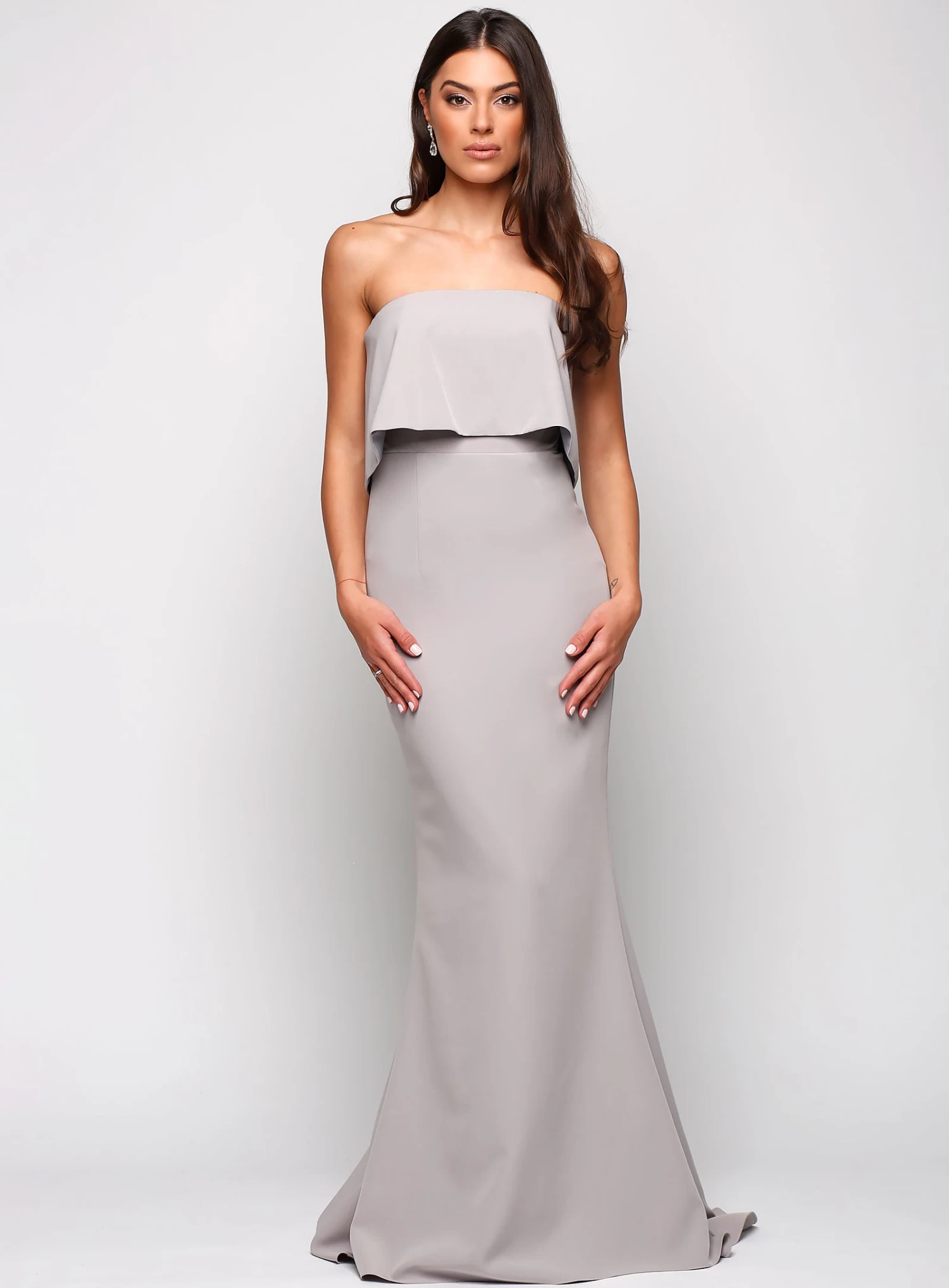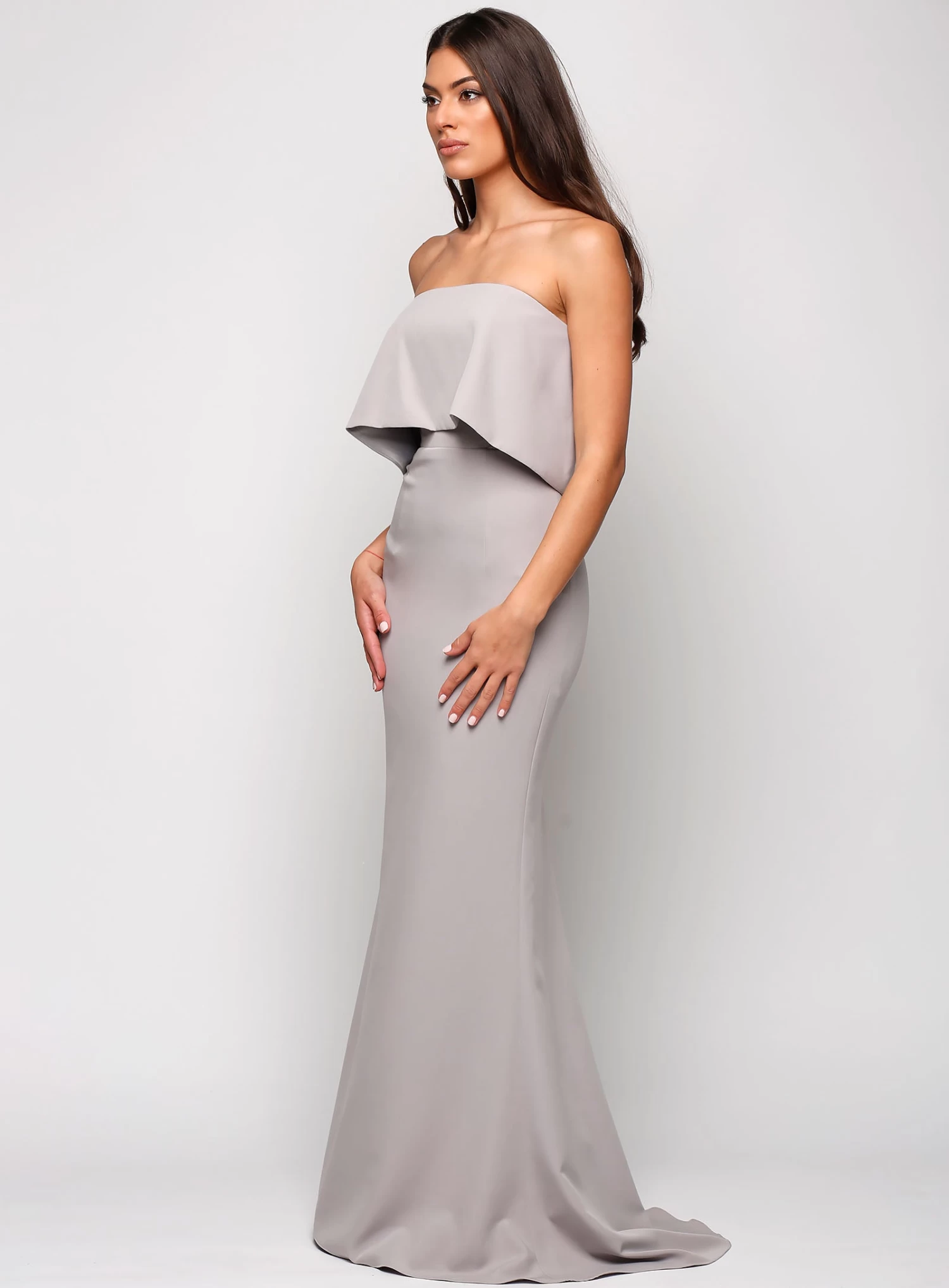 A stunning full length gown by Samantha Rose. A classic strapless style featuring a bodice overlay.
