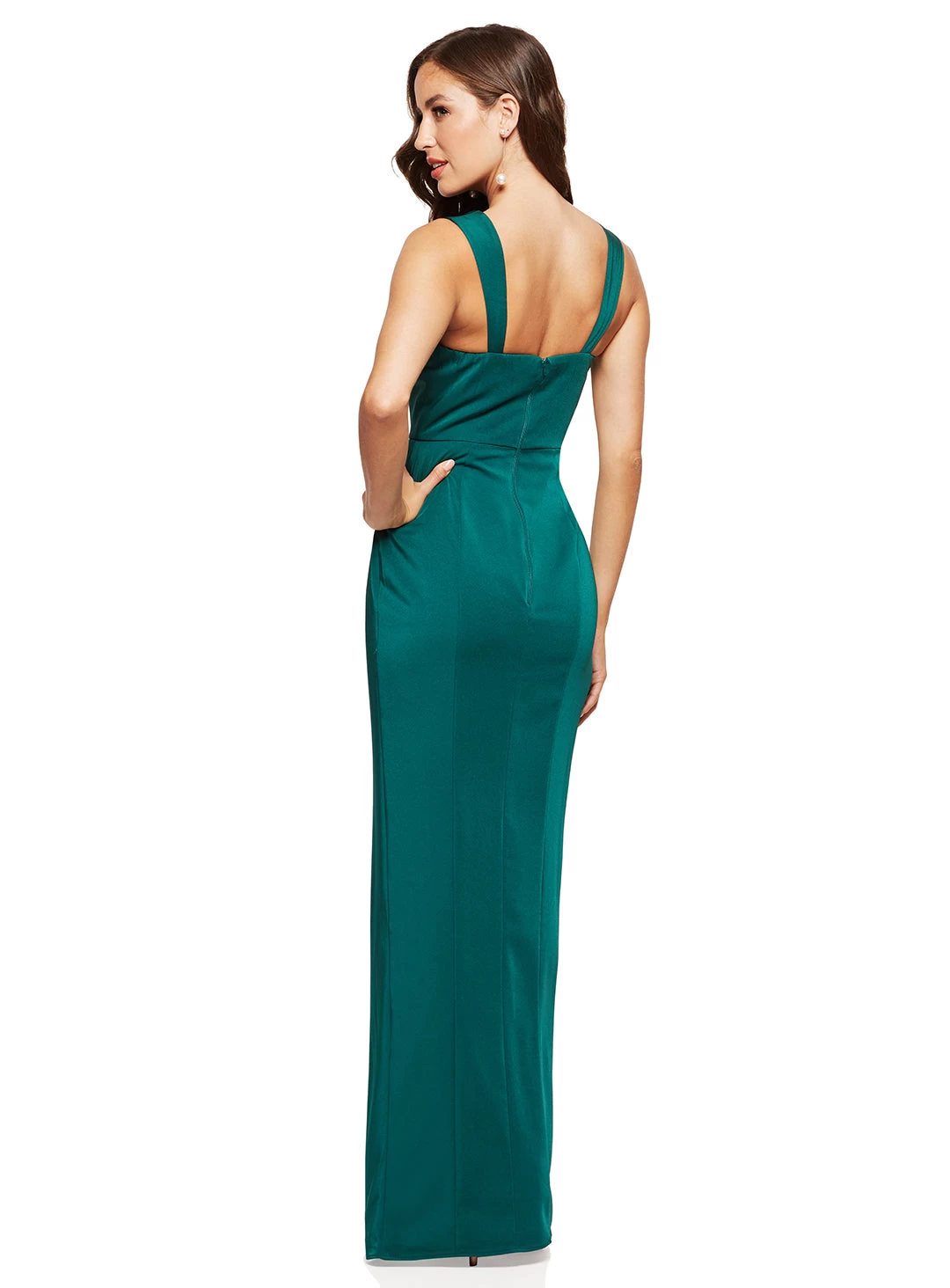 A beautiful full length dress JX6015 by Jadore. A flattering style featuring a sweetheart neckline, pencil skirt and cross over split.
