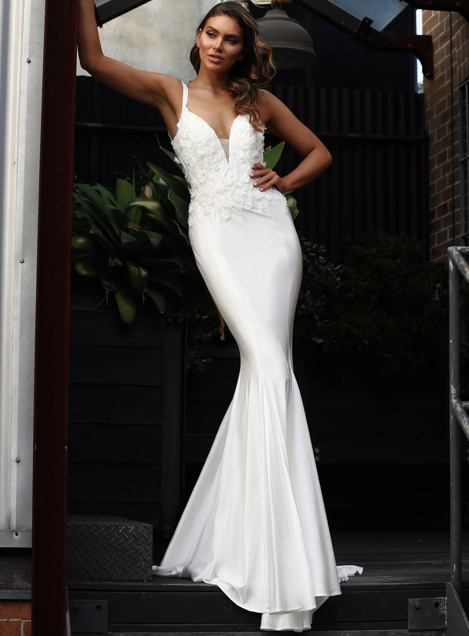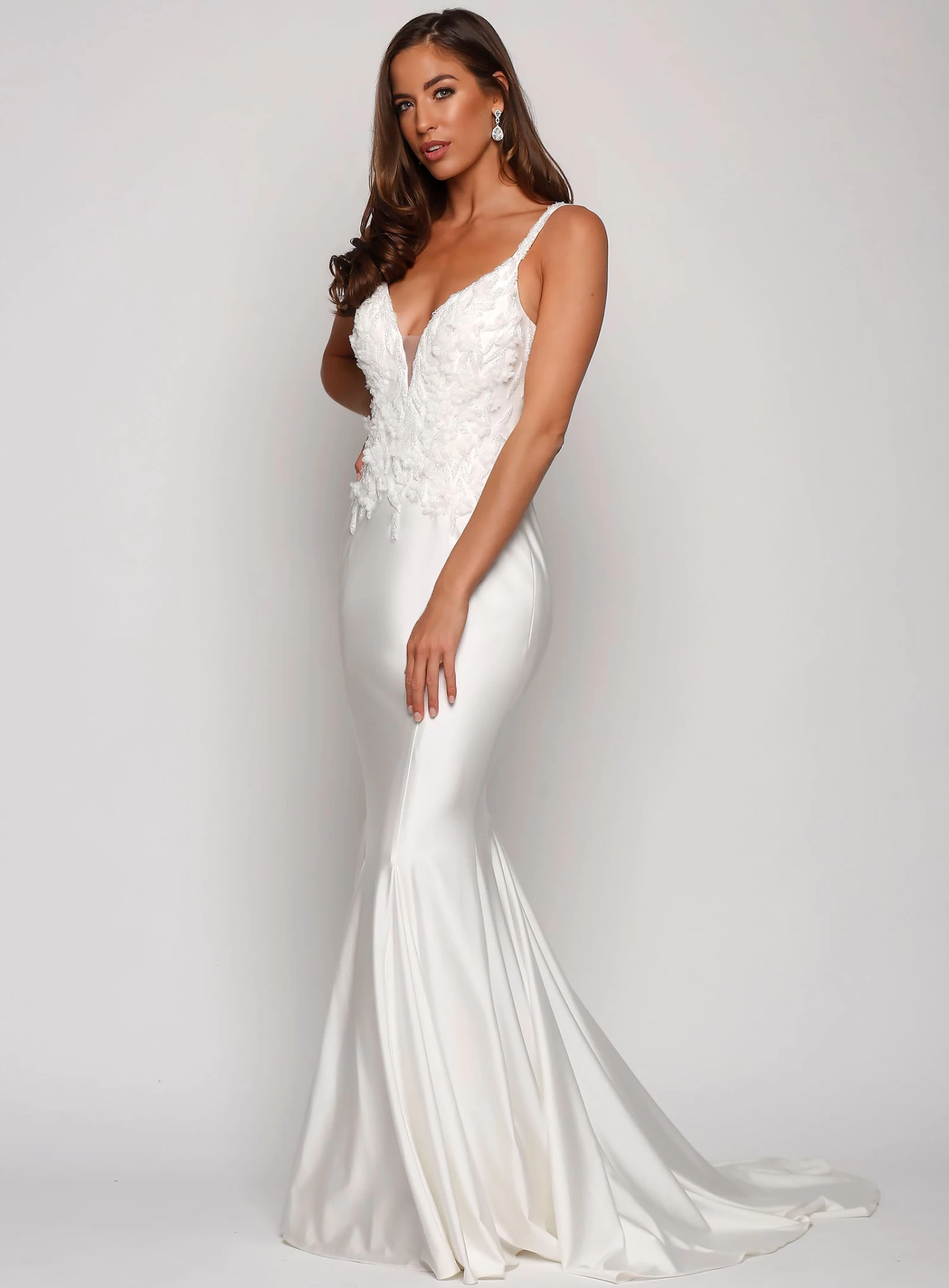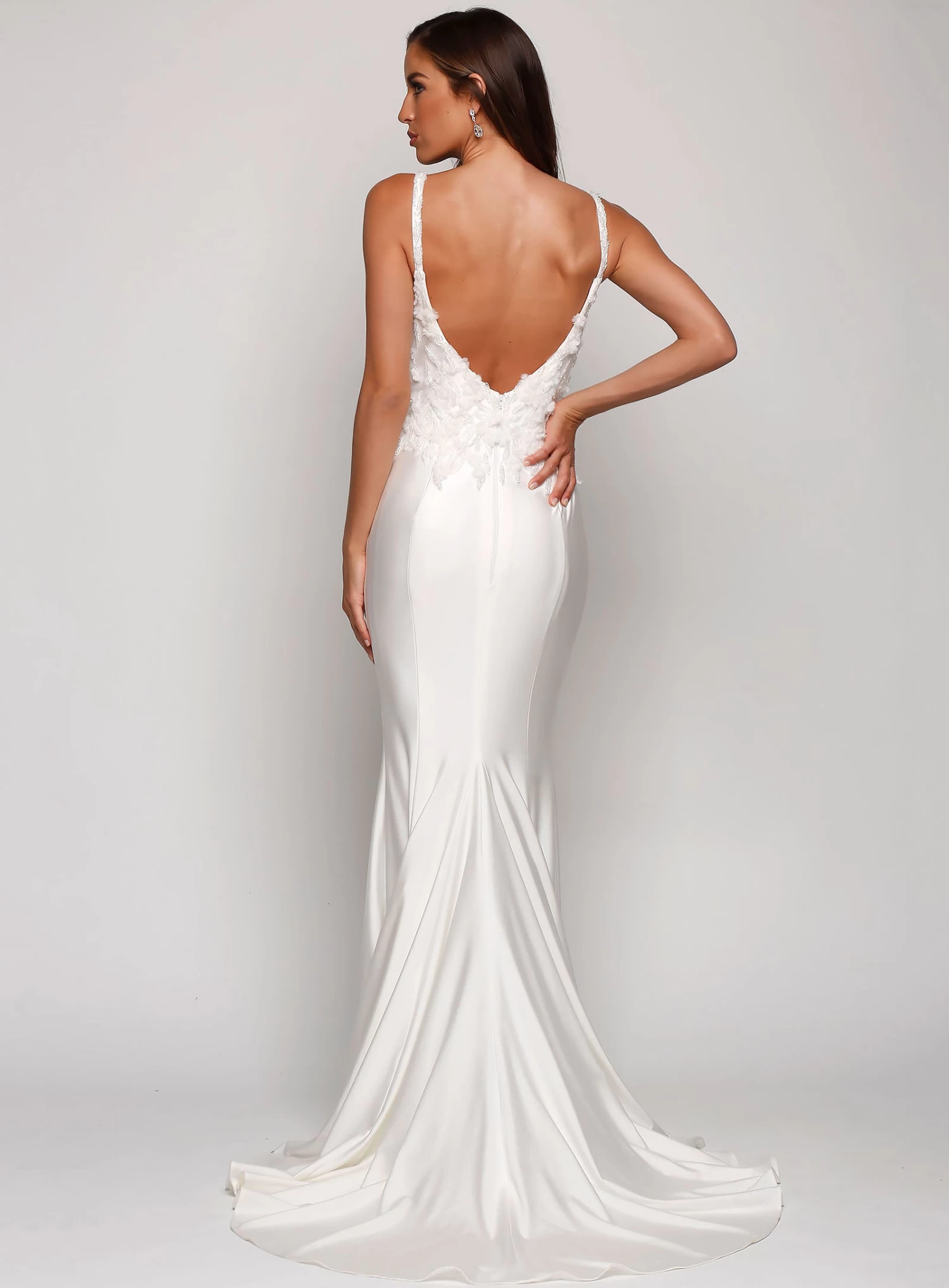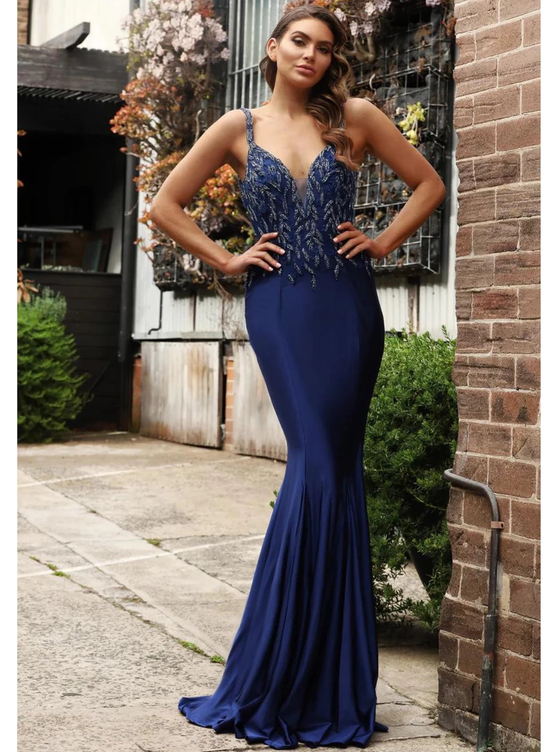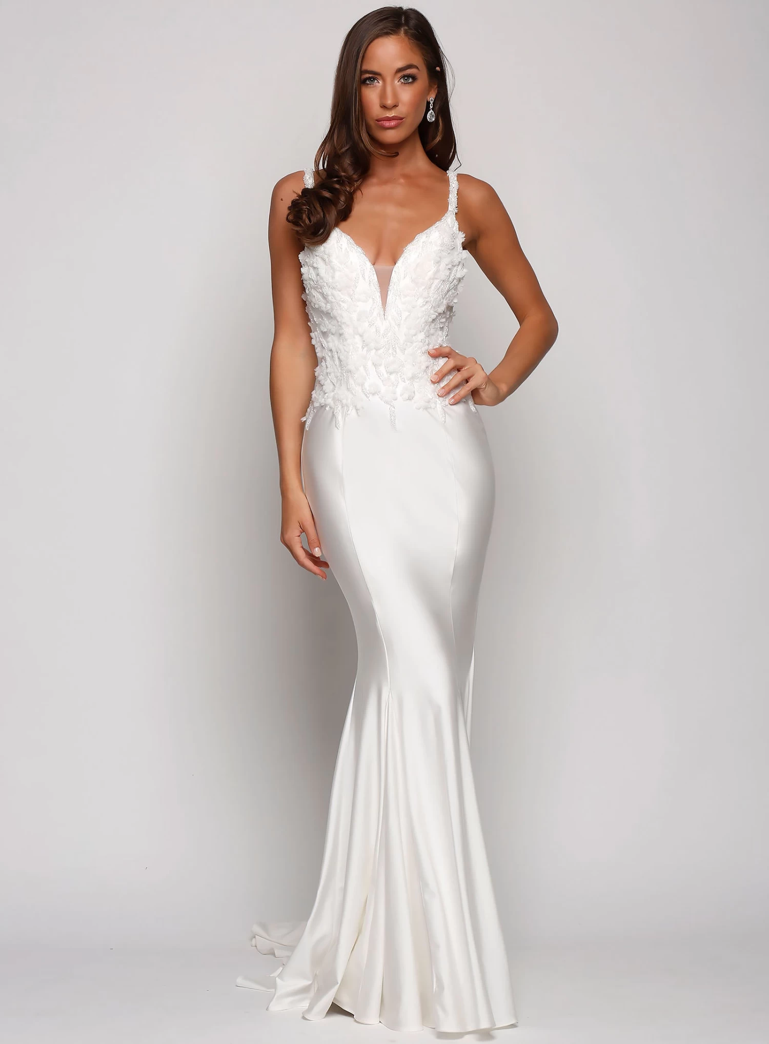 A stunning gown by Jadore Evening JX3001. A full length style with an intricate bodice featuring beading and 3D flowers.