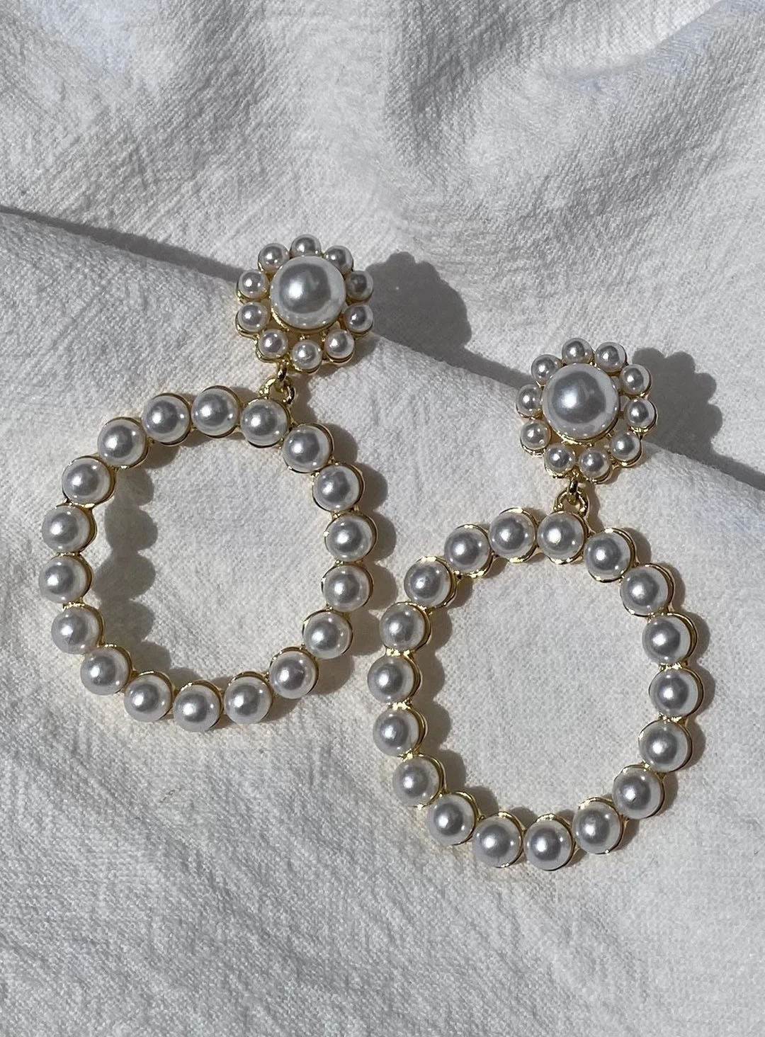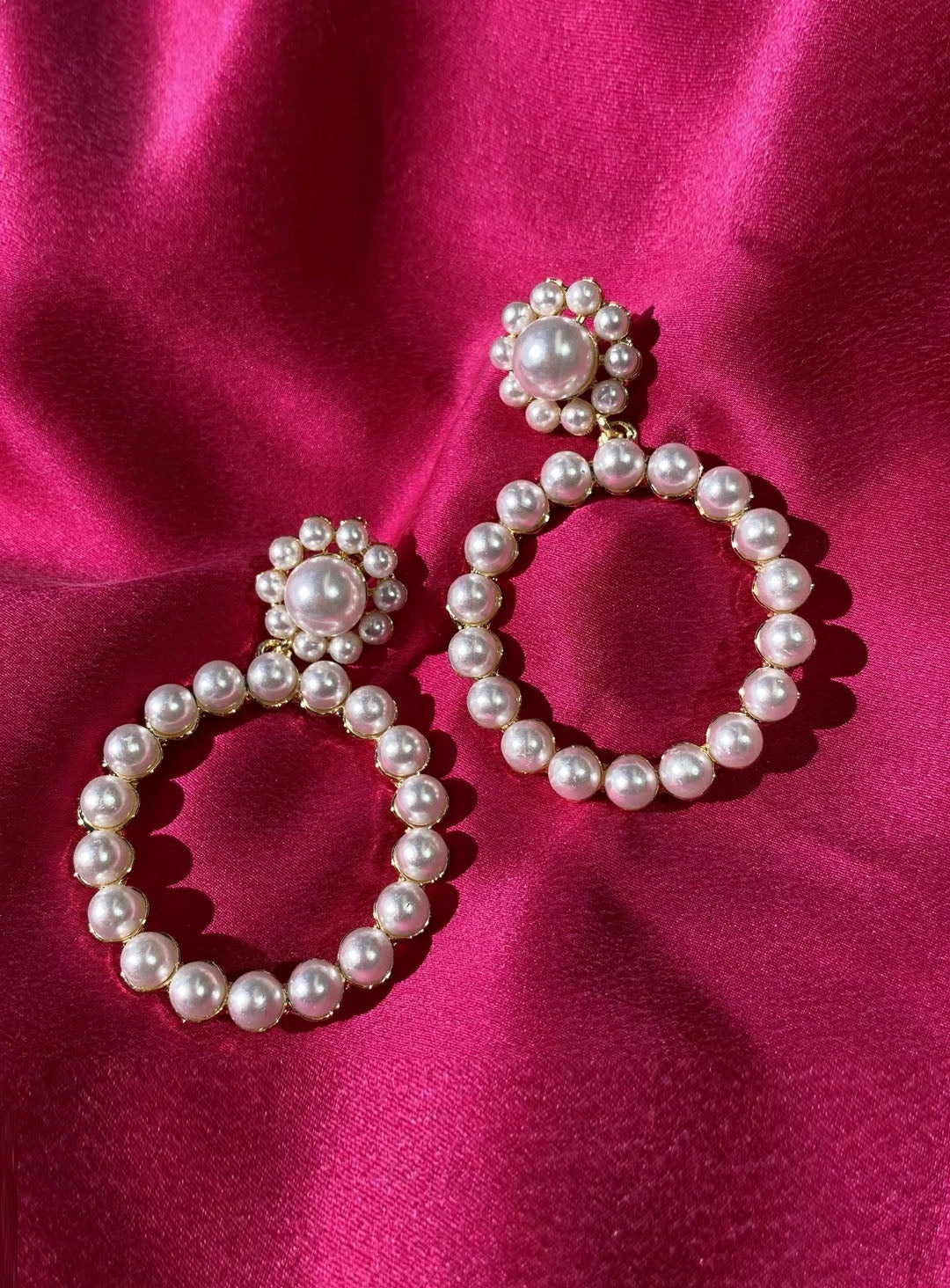 A gorgeous pair of earrings by Samibe. A statement piece featuring faux pearls.