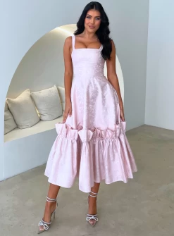 A stunning midi dress by Australian designer Samantha Rose. A unique design featuring a thick waistband, thick straps and a tiered midi skirt.