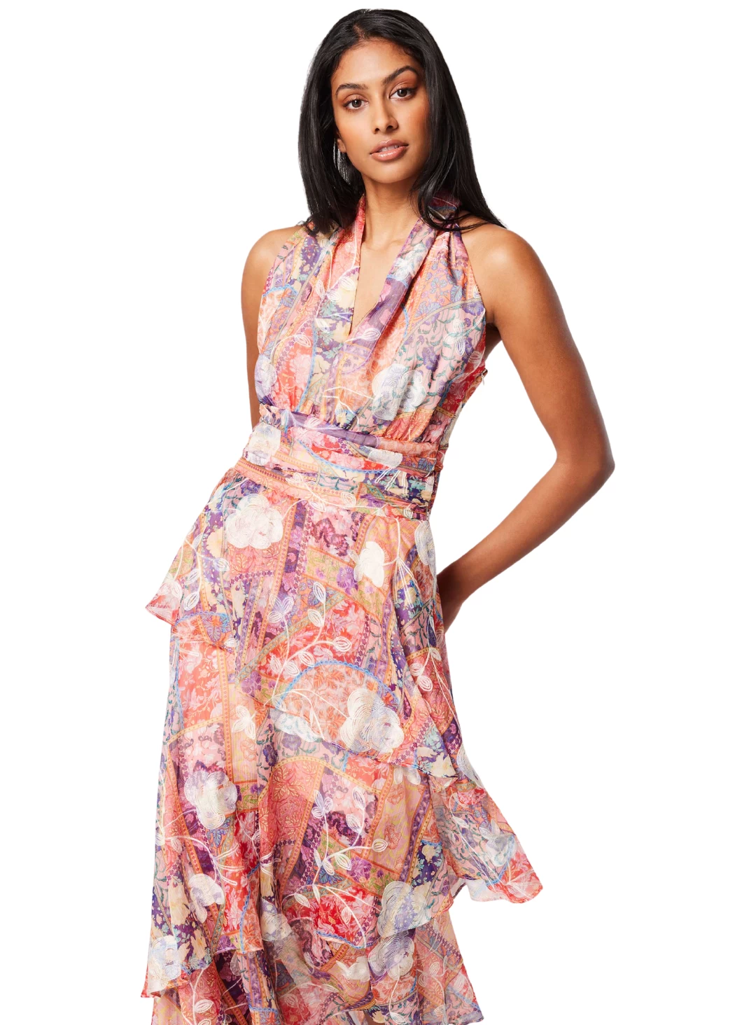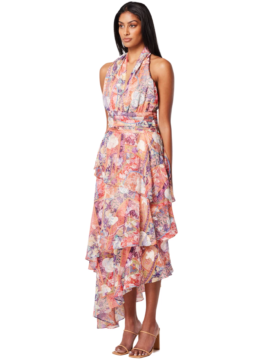 The House Dress is a gorgeous midi dress by Elliatt. A feminine design featuring a halter neckline, cinched waistband and layered tiered skirt.