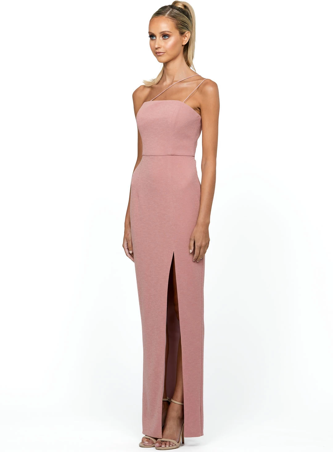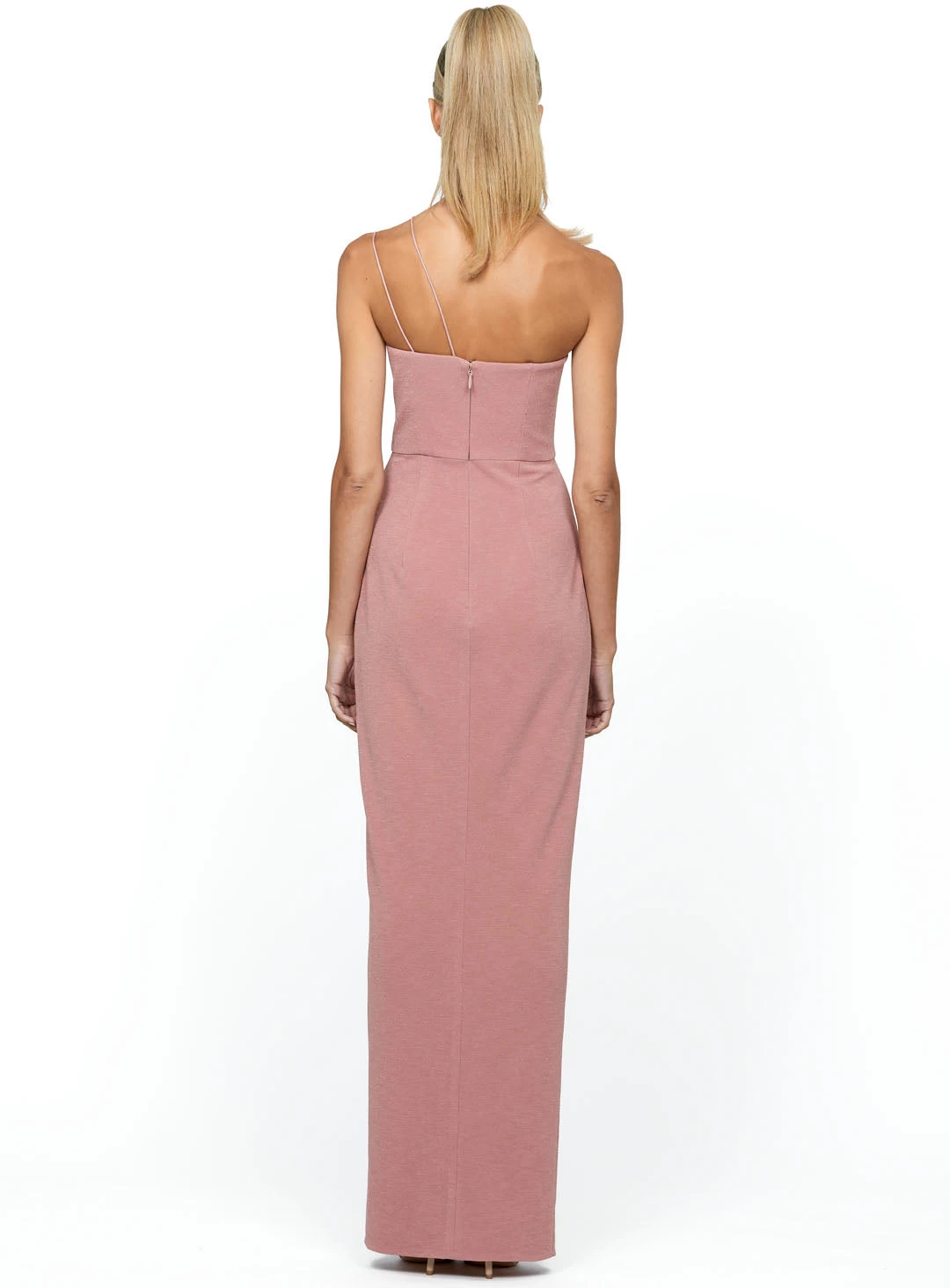 The Iman Asymmetric Maxi Dress is a stunning full-length dress by Bariano Black. A fitted design crafted from a glitter jersey fabric.