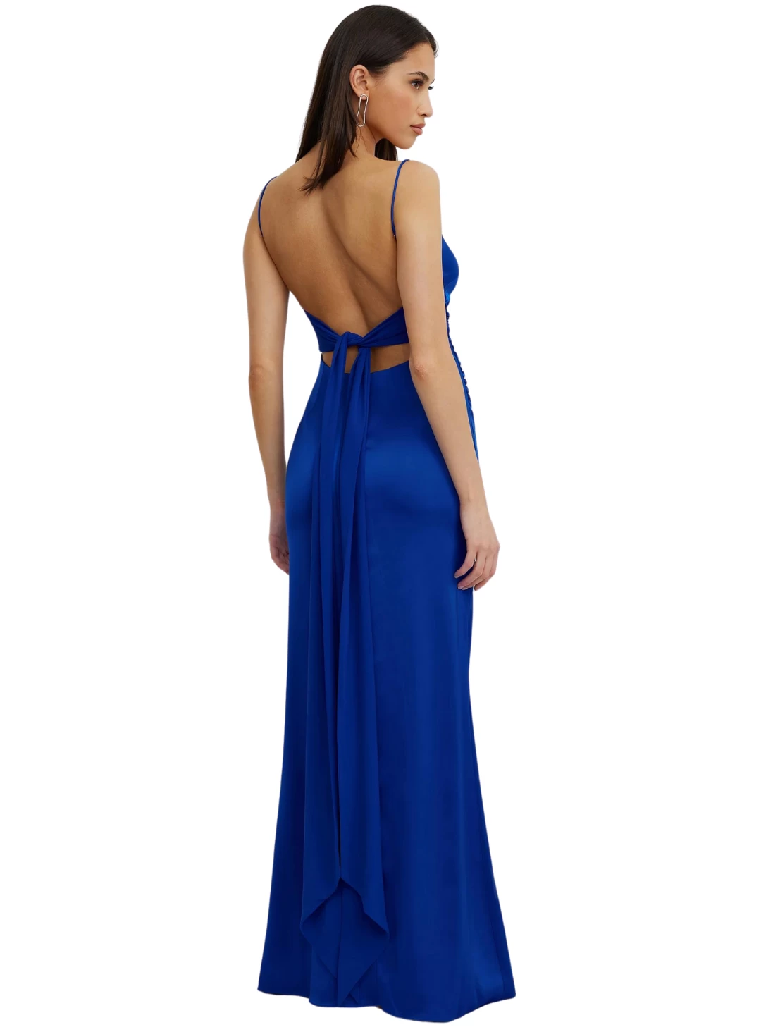 The Ivy Dress by Lexi is a gorgeous full length gown. Featuring delicate gathers at the waist, straight neckline with spaghetti straps and an adjustable tie back.