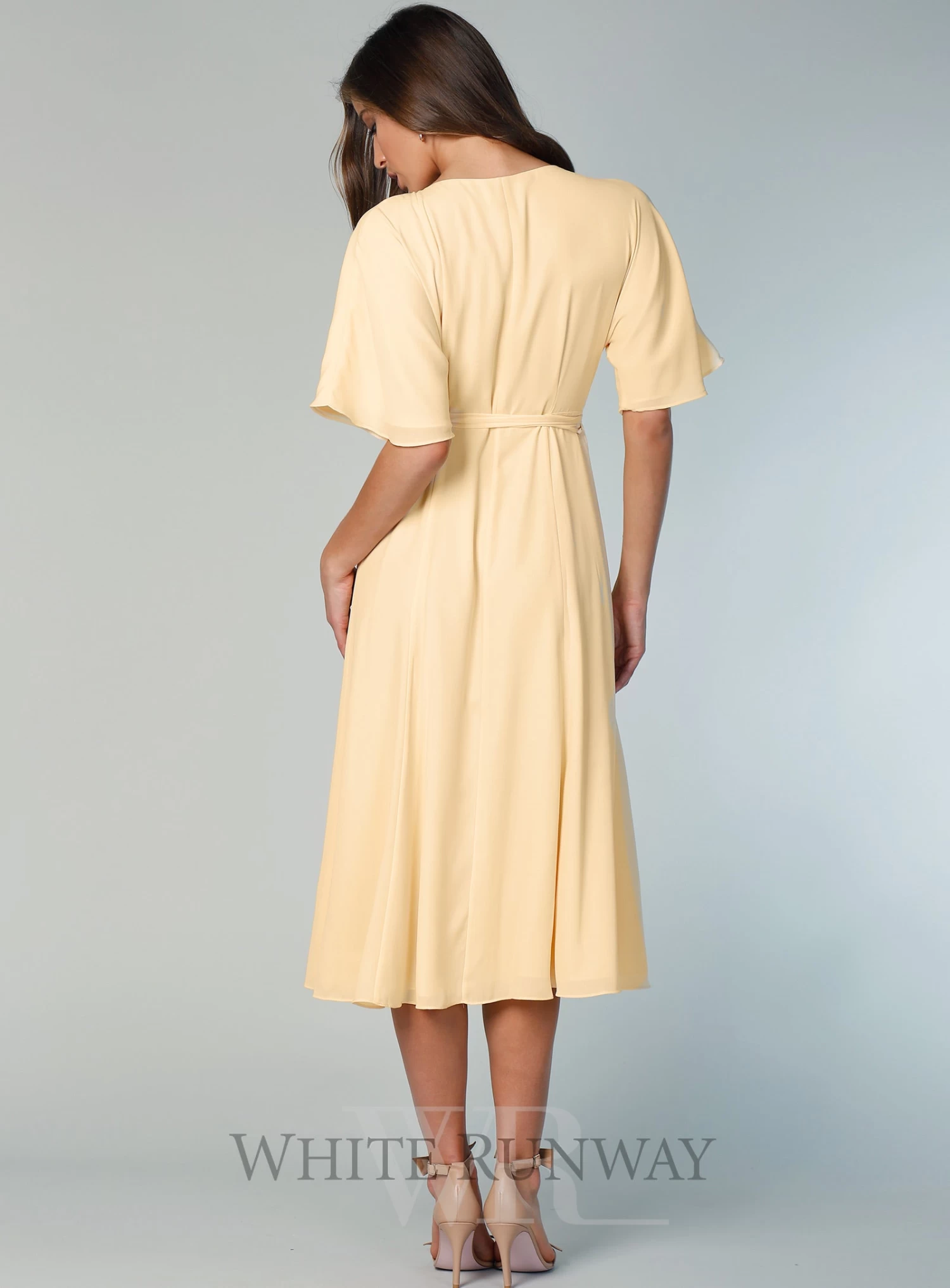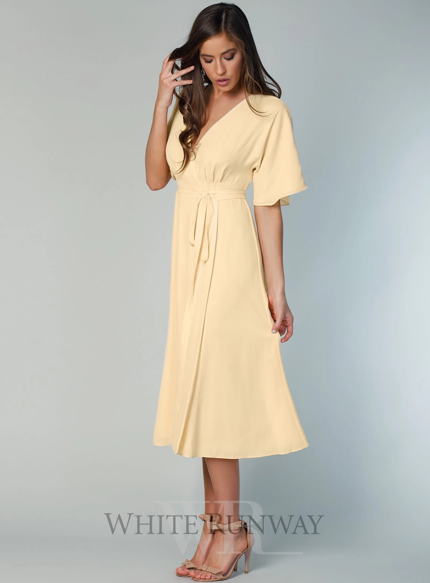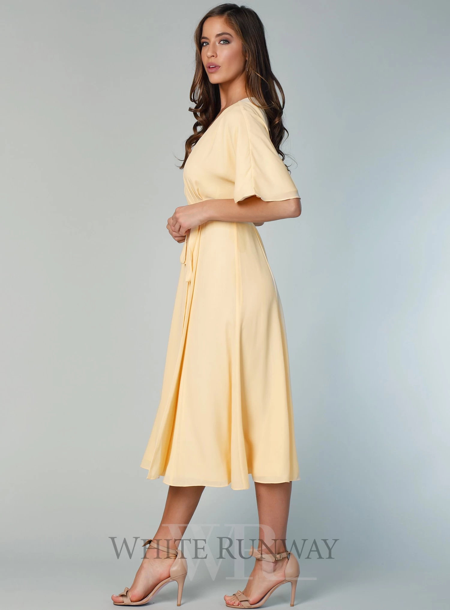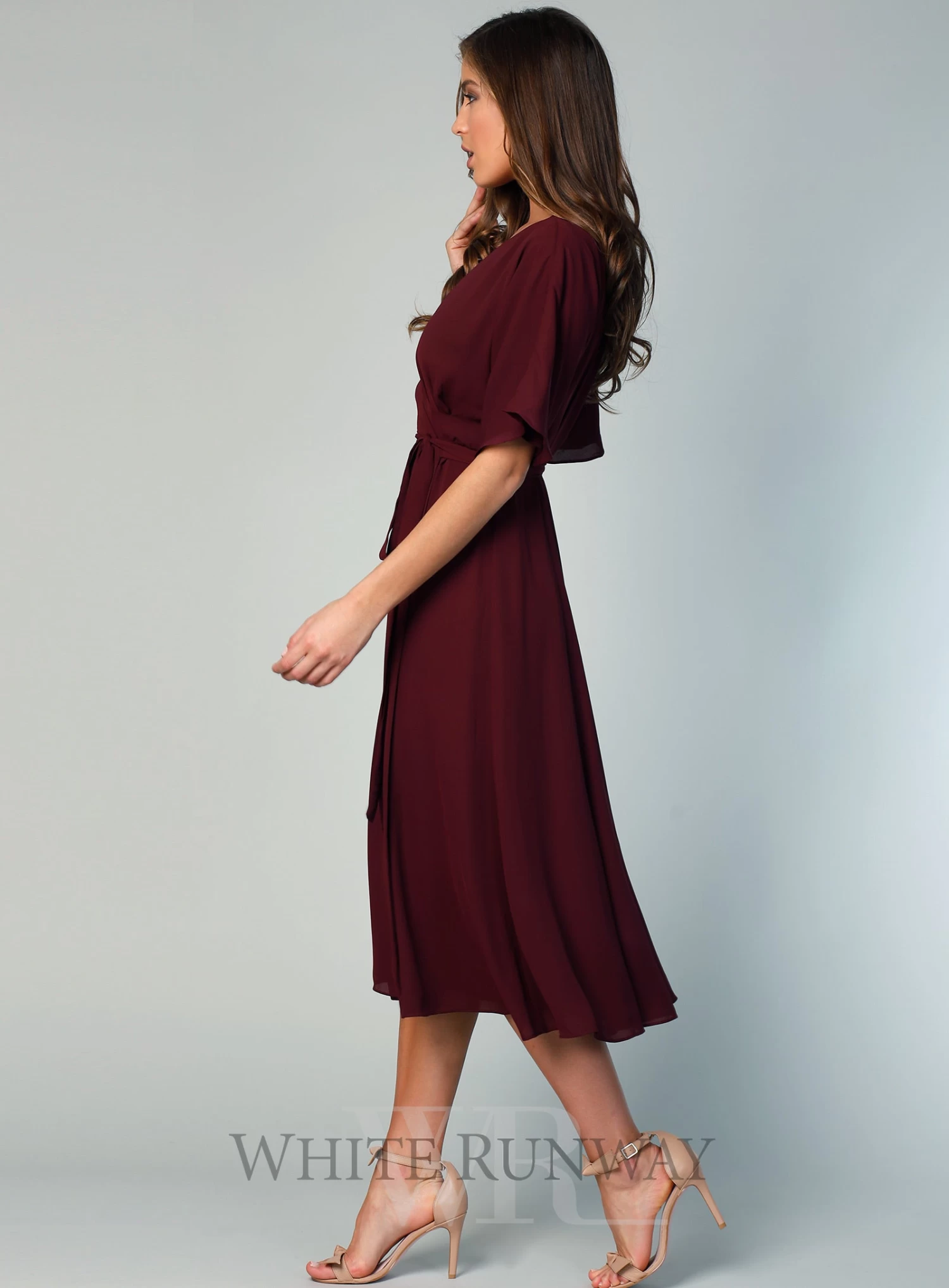 A beautiful midi length wrap dress by Samantha Rose. A v-neck style featuring a kimono sleeve bodice and self tie at waist.