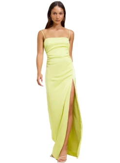 The Kiri Dress is a gorgeous dress from Lexi. Cut from a luxe satin, it features delicate gathers at the waist and a straight skirt with a thigh high split.
