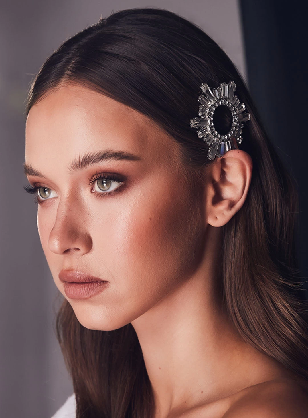 The Liana Diamonte Hair Clip by Natalie Anne X Billini offers an instant injection of high-fashion to your accessory game. Add extra style points and double up on each side.