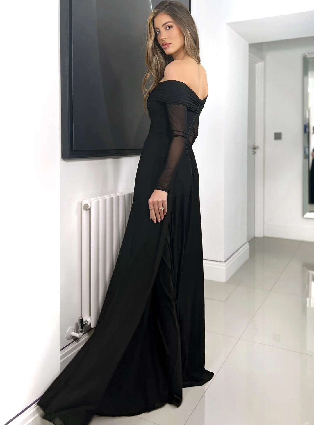 A stunning full length dress by Jadore Evening JX6032. An off shoulder sleeved style featuring cross over detail on the bodice and A-line flowy skirt.