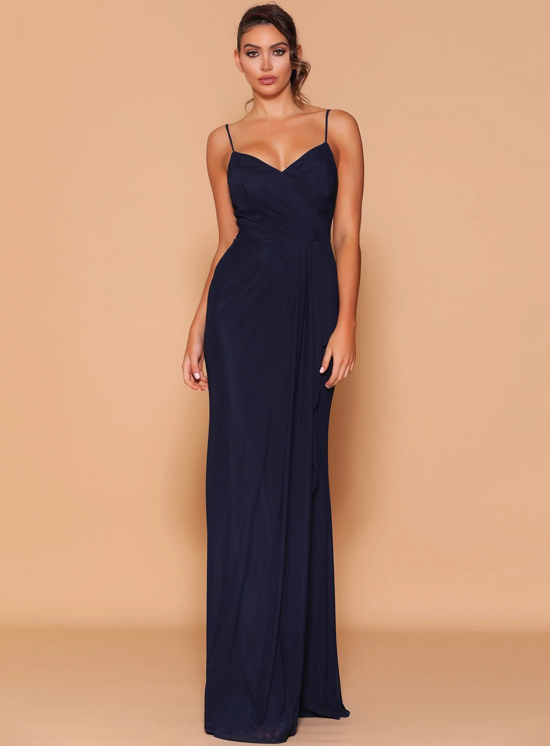 A stunning full length dress by Les Demoiselle LD1091. Features a sweetheart neckline with ruching in the bodice and draped detailing on the waist.