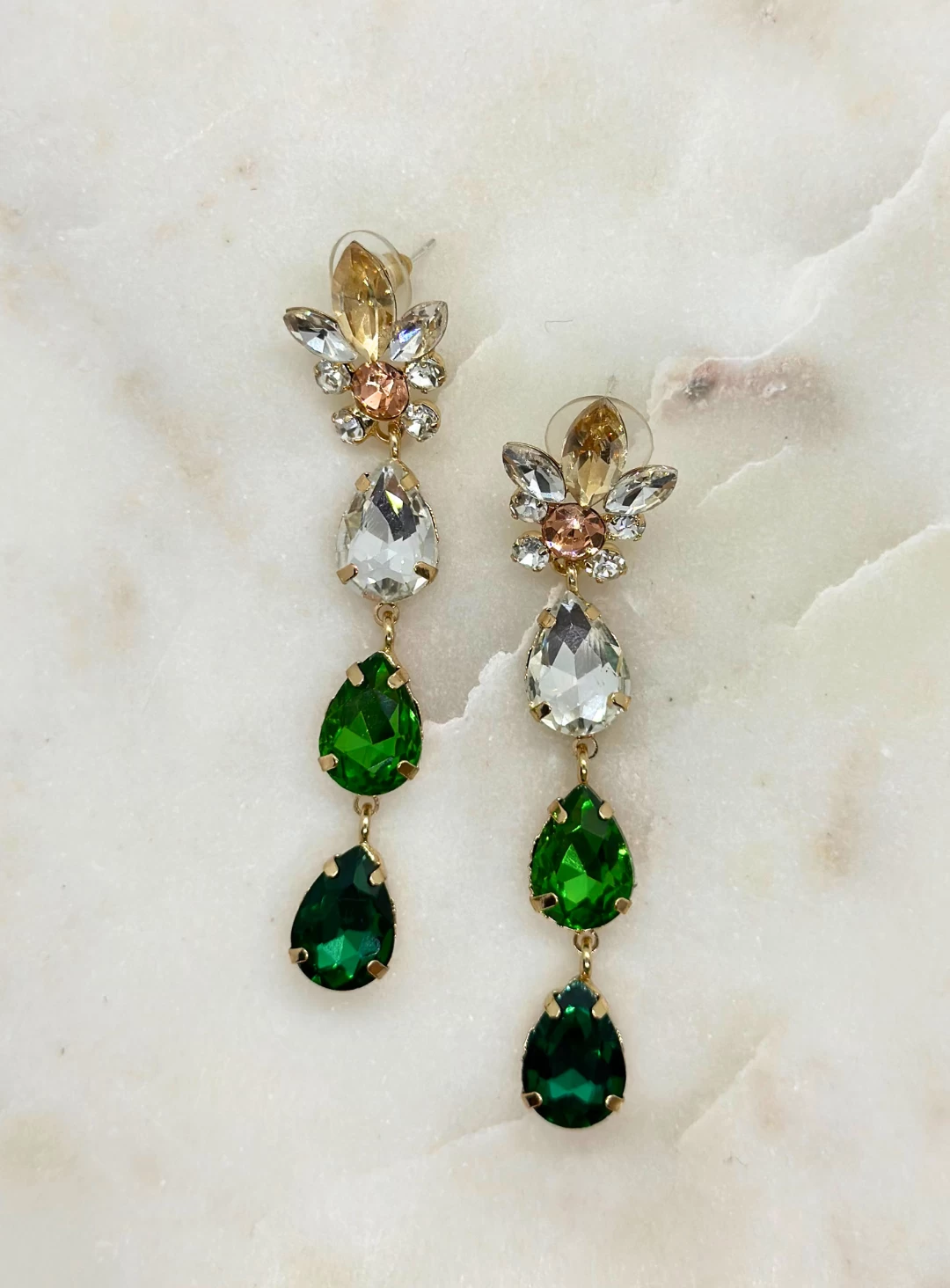 A gorgeous pair of earrings from Samantha Rose Jewellery. Featuring a multi-layer drop with glass pendants.