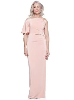 A stunning full length dress by Trellis Lane. A flattering one sleeve design featuring an asymmetrical neckline, side split and side ruffle.