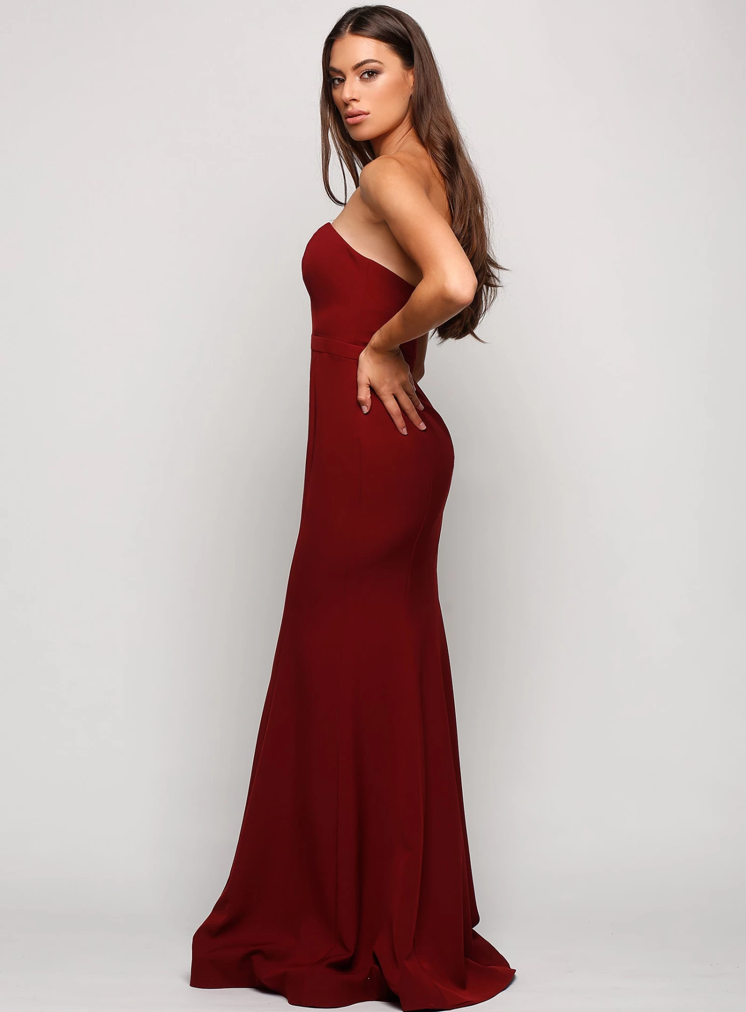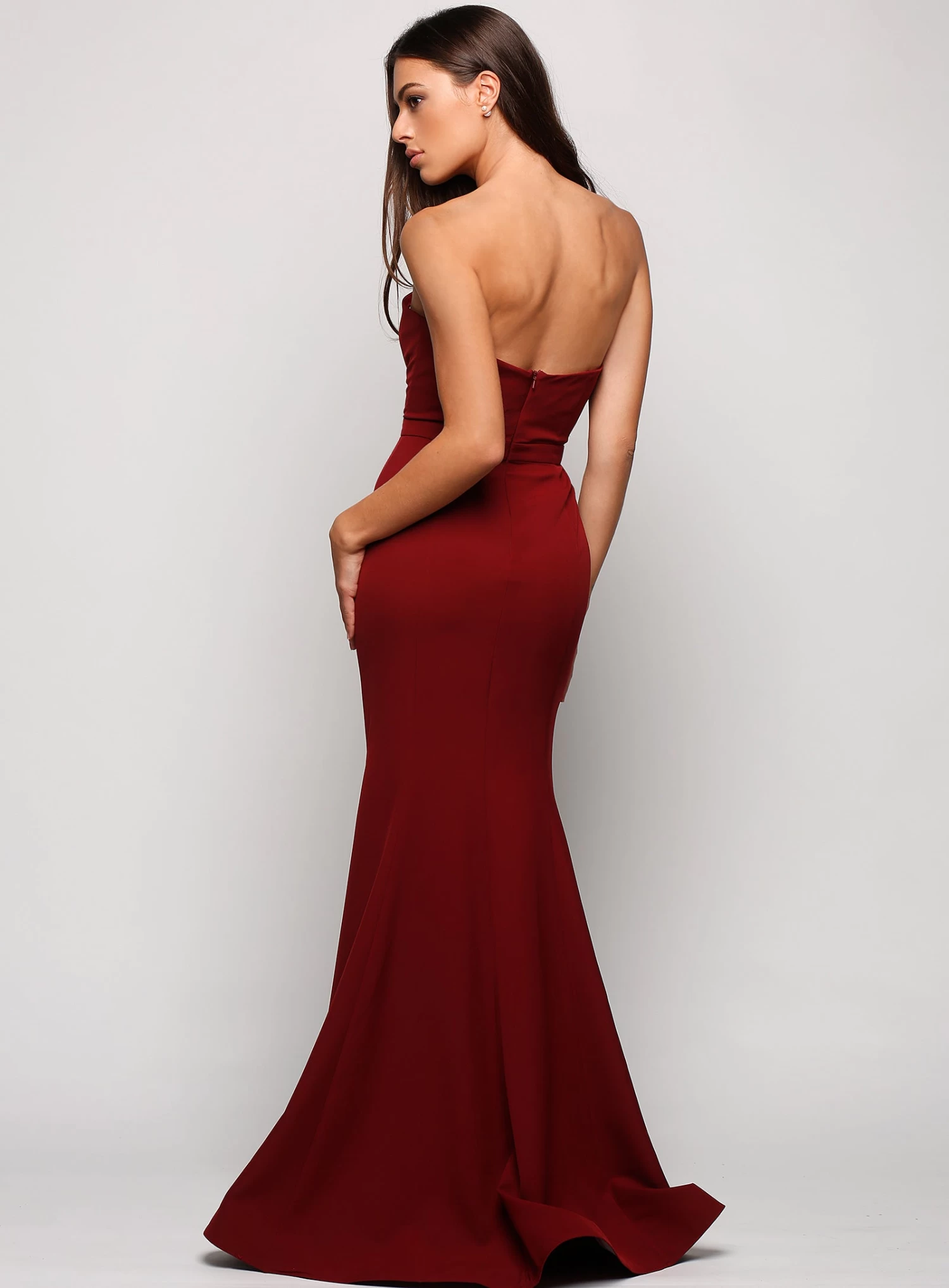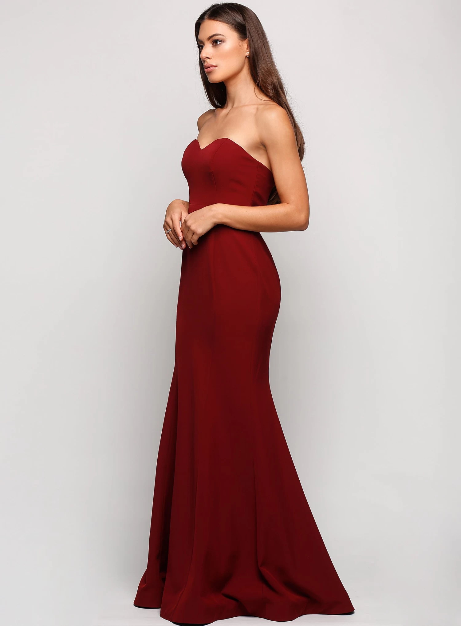 A stunning full length style by Samantha Rose. Featuring a strapless bodice with sweetheart neckline and slim floor length skirt.