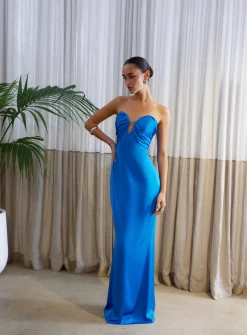 The Magnolia dress is a stunning gown by Lexi. Crafted from a luxe, midweight stretch satin. With its simple but elegant silhouette this piece features a beautifully gathered neckline with a rounded bust design. It is full length and fastened with an invisible zipper.