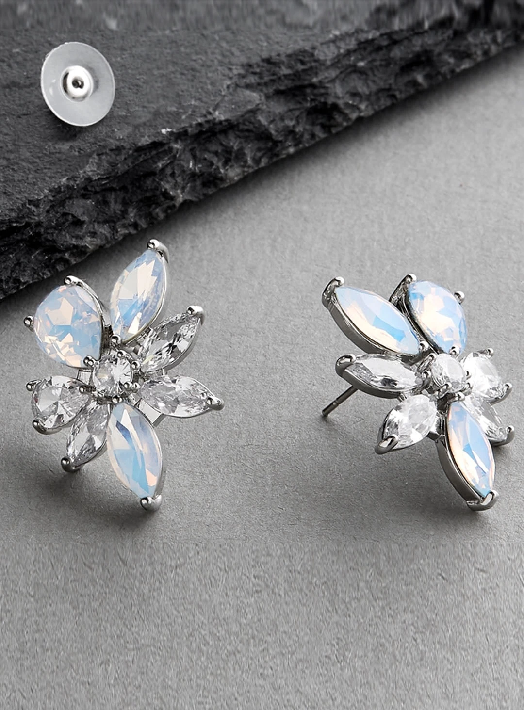 Delicate cluster earrings by Mariell. Features cubic zirconia and opal crystal.