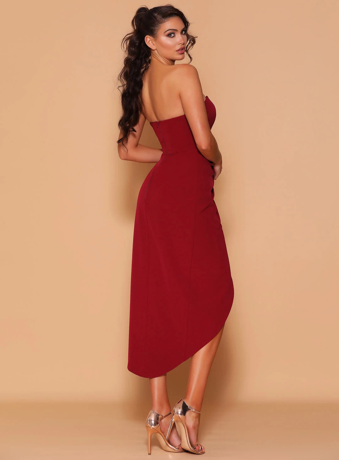 A beautiful full length dress by Les Demoiselle LD1131. A strapless style featuring sweetheart neckline and wrap style skirt.