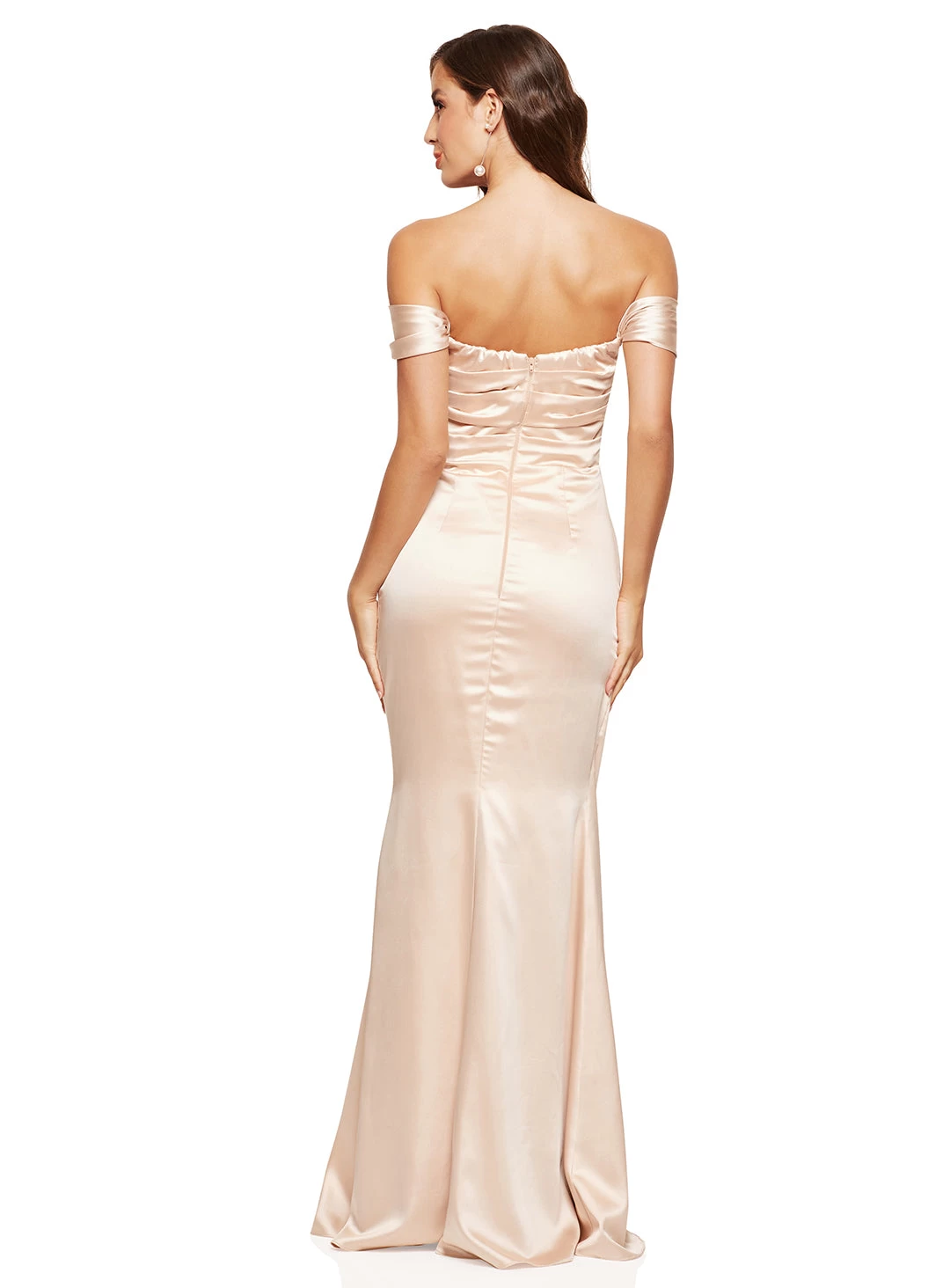 A gorgeous full length dress by Jadore Evening JP119. A flattering off shoulder design featuring a cinched waist and ruching.Â