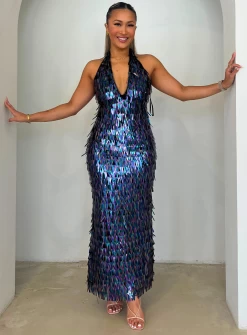 The Valentina maxi dress is a stunning maxi dress by Romance the Label. Crafted in a gorgeous multi-colored pleated fabric, it features long sleeves and a waist belt.