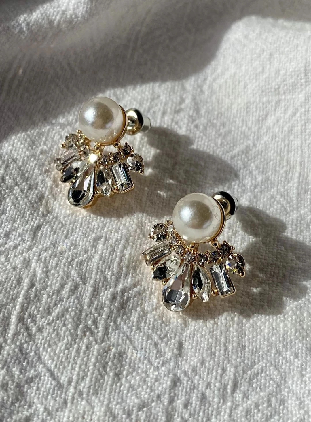 A gorgeous pair of earrings by Samibe. Stud earring featuring silver diamante and faux pearl detailing.