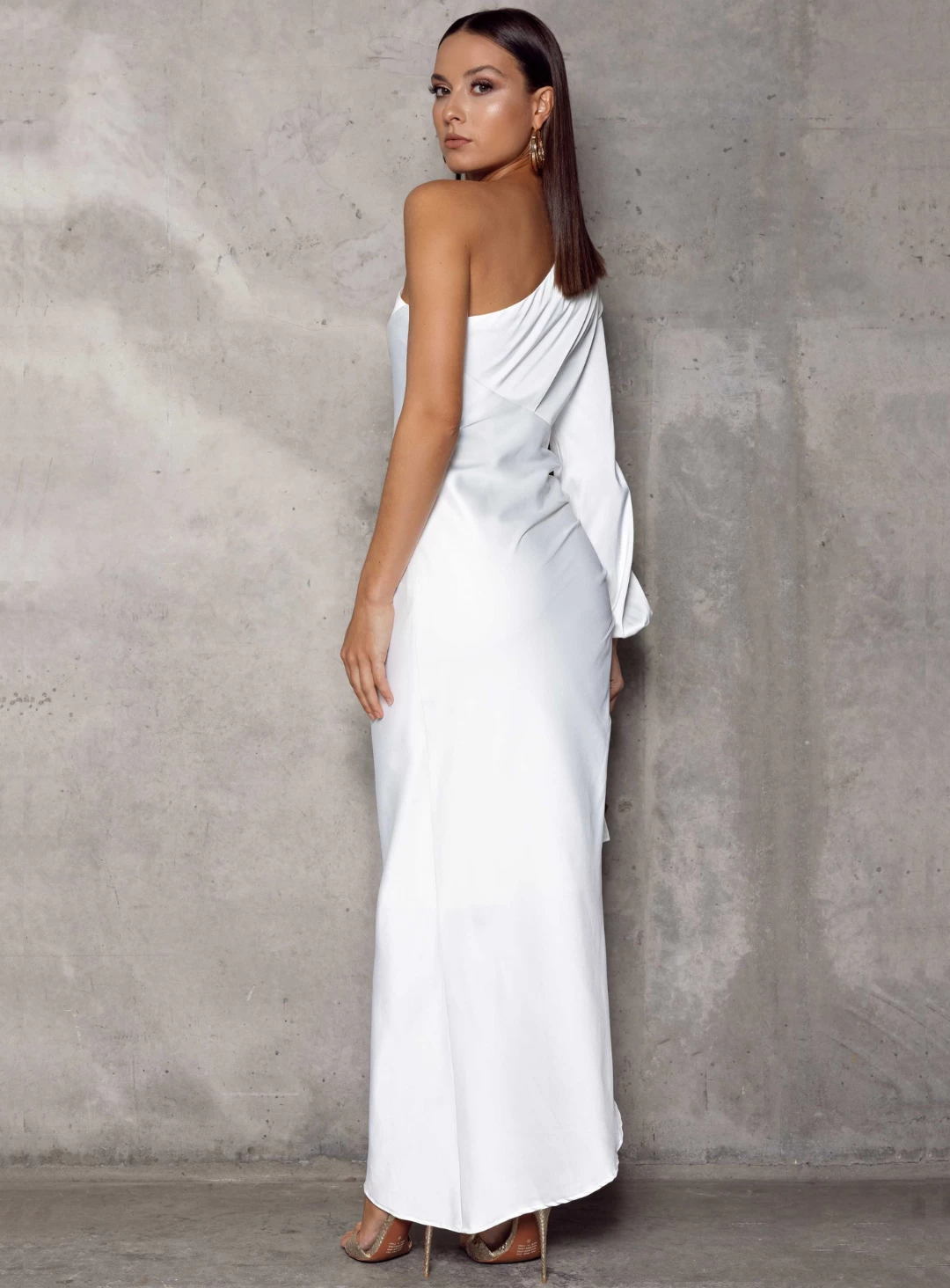 The Leon dress is a stunning full-length dress by Elle Zeitoune. A one shoulder design featuring a pleated and gathered skirt.